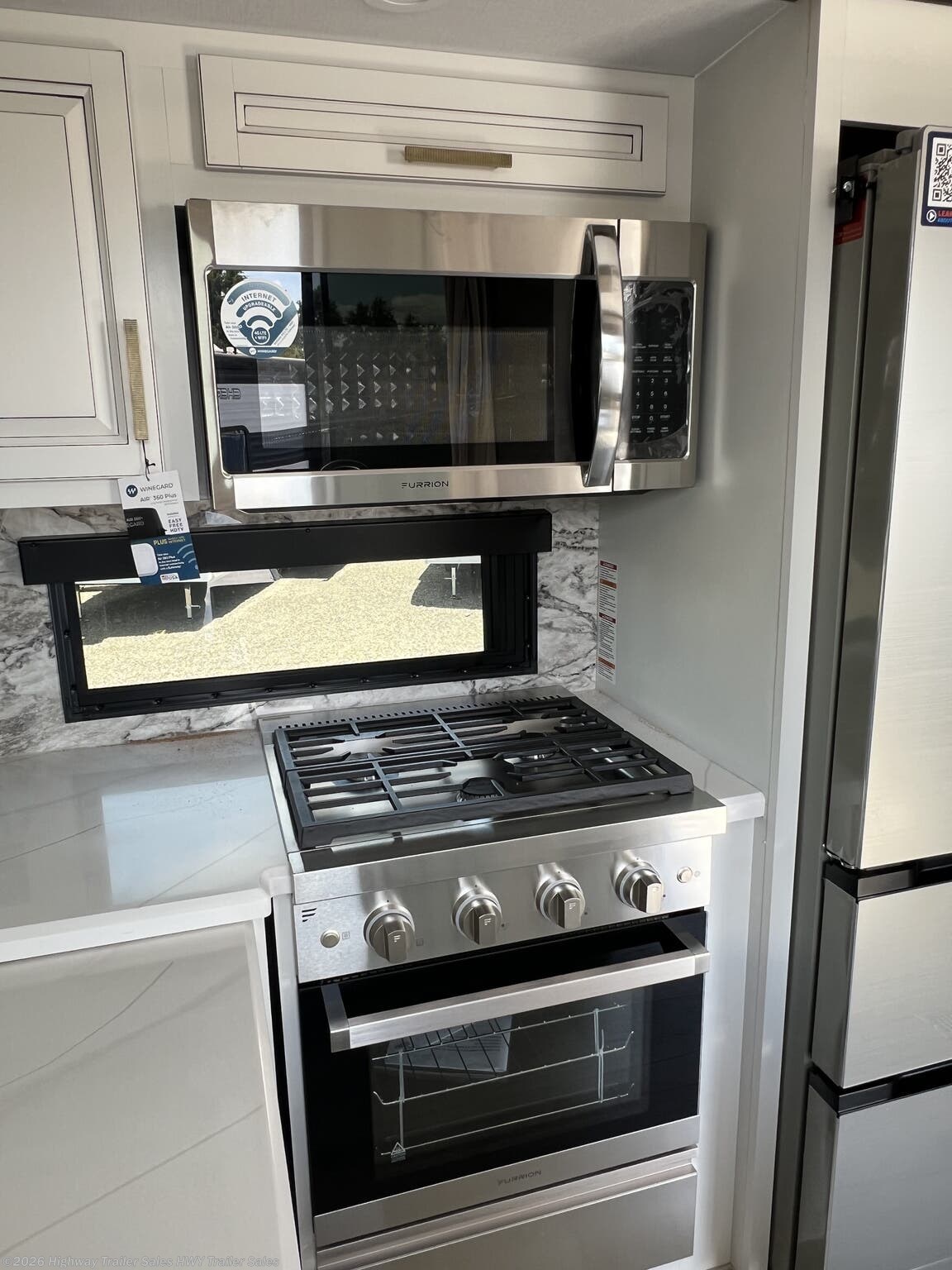 Convection Microwave, Enclosed Water Tank, Furnace, Heated Water Tank, Oven, Refrigerator, Refrigerator (12V), Residential Refrigerator, Stainless Appliances, Stove, Water Heater -