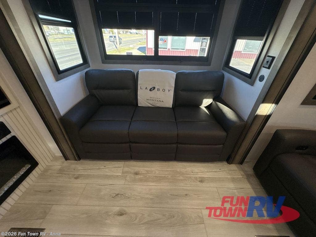 Enjoy luxury, innovation, and the outdoors in any one of Montana's finest fifth wheels. Each set the standard with exceptional features, and exciting factory installed options to provide you a great home on the road. Keystone's 12" I-beam chassis with z-frame technology provides a strong and durable foundation to your fifth wheel, and the four season living package will help extend your camping season. A few other construction features you will appreciate include a MORryde CRE3000 suspension, a fully walkable roof with an alpha seamless TPO membrane system, and 4k square frameless tinted safety glass windows. Each feature stylish interiors with two decor choices paired with beautiful hardwood cabinetry, Beauflor vinyl flooring throughout, central vacuum, plus a La-Z-Boy furniture package for all-around comfort!