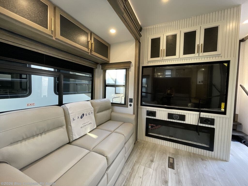 Enjoy luxury, innovation, and the outdoors in any one of Montana's finest fifth wheels. Each set the standard with exceptional features, and exciting factory installed options to provide you a great home on the road. Keystone's 12" I-beam chassis with z-frame technology provides a strong and durable foundation to your fifth wheel, and the four season living package will help extend your camping season. A few other construction features you will appreciate include a MORryde CRE3000 suspension, a fully walkable roof with an alpha seamless TPO membrane system, and 4k square frameless tinted safety glass windows. Each feature stylish interiors with two decor choices paired with beautiful hardwood cabinetry, Beauflor vinyl flooring throughout, central vacuum, plus a La-Z-Boy furniture package for all-around comfort!