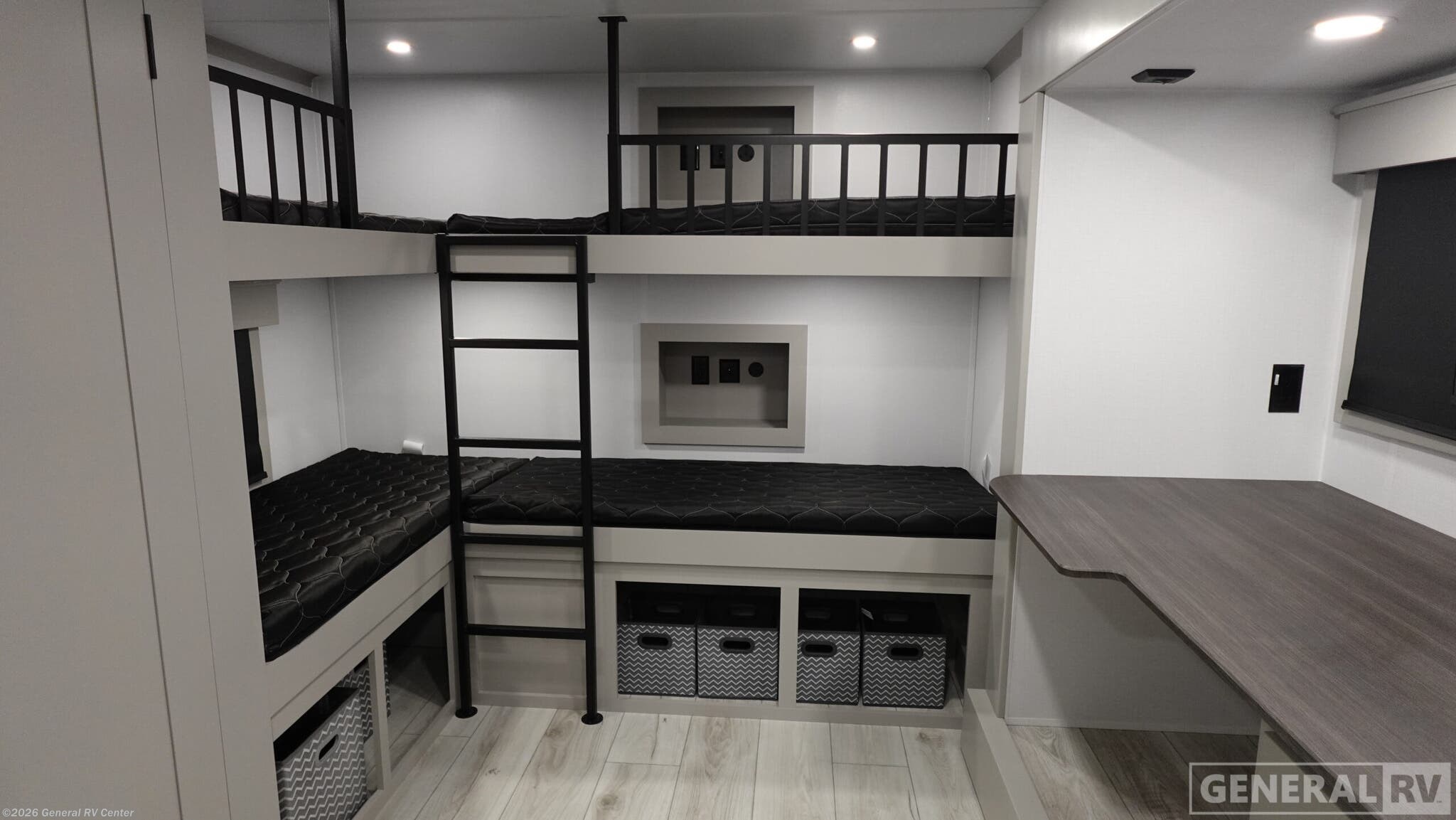 Experience the pinnacle of comfort and style with the 2026 Keystone Montana High Country 397FB. This fifth wheel is designed with luxury and functionality in mind, offering ample space for up to ten guests. The master suite features a king bed and a spacious ensuite with dual sinks, ensuring a restful retreat after a day of adventure. The bunkhouse at the rear provides a cozy space for additional guests, complete with its own storage and entertainment area, making it perfect for families or groups. The heart of this RV is its elegant kitchen and living area, where a 24-inch range and residential refrigerator await your culinary creations. Enjoy meals at the stylish island with pullout dog bowls, ensuring even your furry friends feel at home. Relax in front of the smart HDTV and fireplace, creating a warm ambiance on cooler nights. With two large awnings, outdoor enjoyment is a breeze, providing shade and comfort for all your outdoor activities. Whether you’re embarking on a weekend getaway or an extended journey, the Montana High Country 397FB promises an unparalleled RV experience. For more details, visit your nearest General RV dealership.