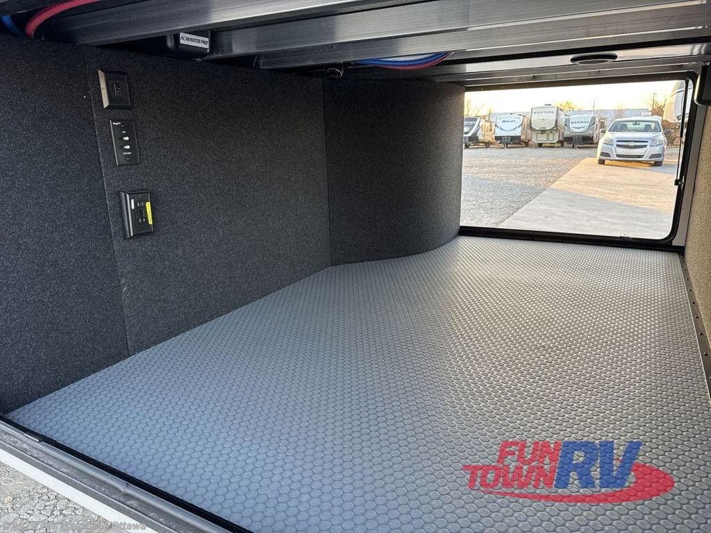 You can live life to its fullest in this Montana High Country fifth wheel! There are opposing slides in the main living area for more space, and the fireplace adds coziness to this space. Spend time relaxing on the power theater seating, and use the hide-a-bed sofa as an extra bed when you have friends turn into overnight guests. The pantry will help you keep your snacks stored away, and full bathroom has a dual-sink vanity and 48" x 30" shower with seat for a convenient way to get clean. The front bedroom has a king bed slide with storage underneath the bed, and the wardrobe and dresser provide more storage space.