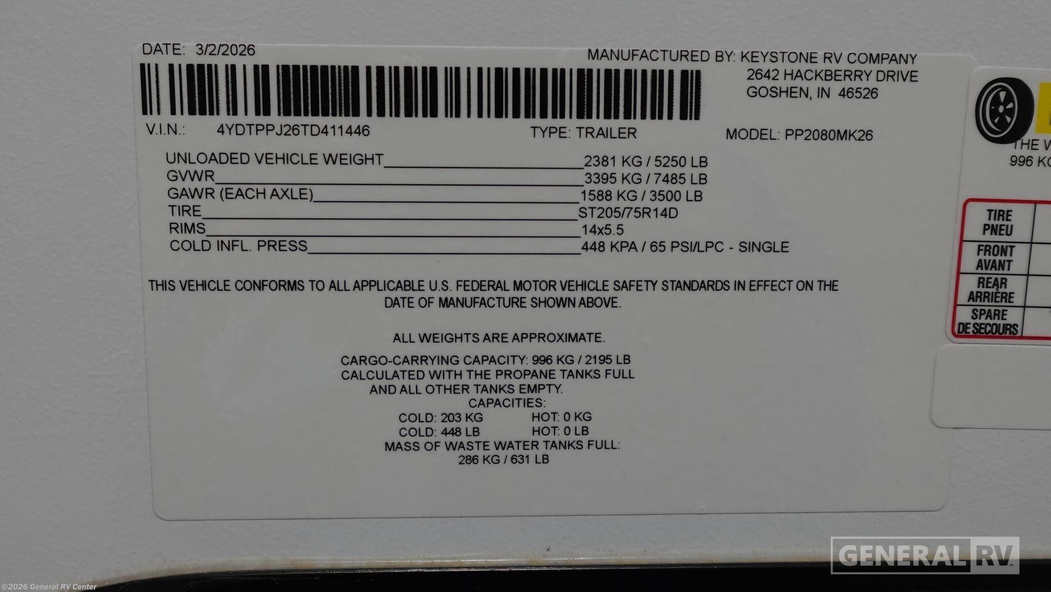 - VIN4YDTPPJ26TD411446