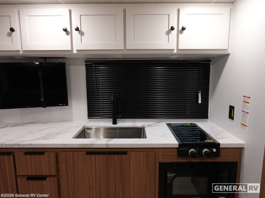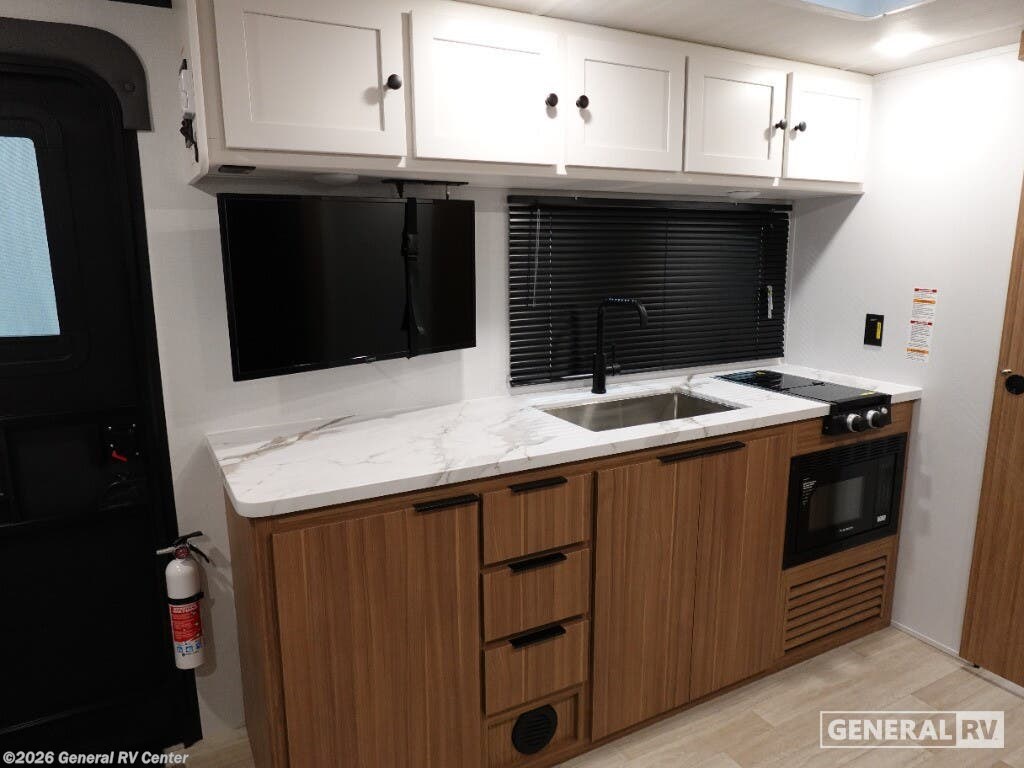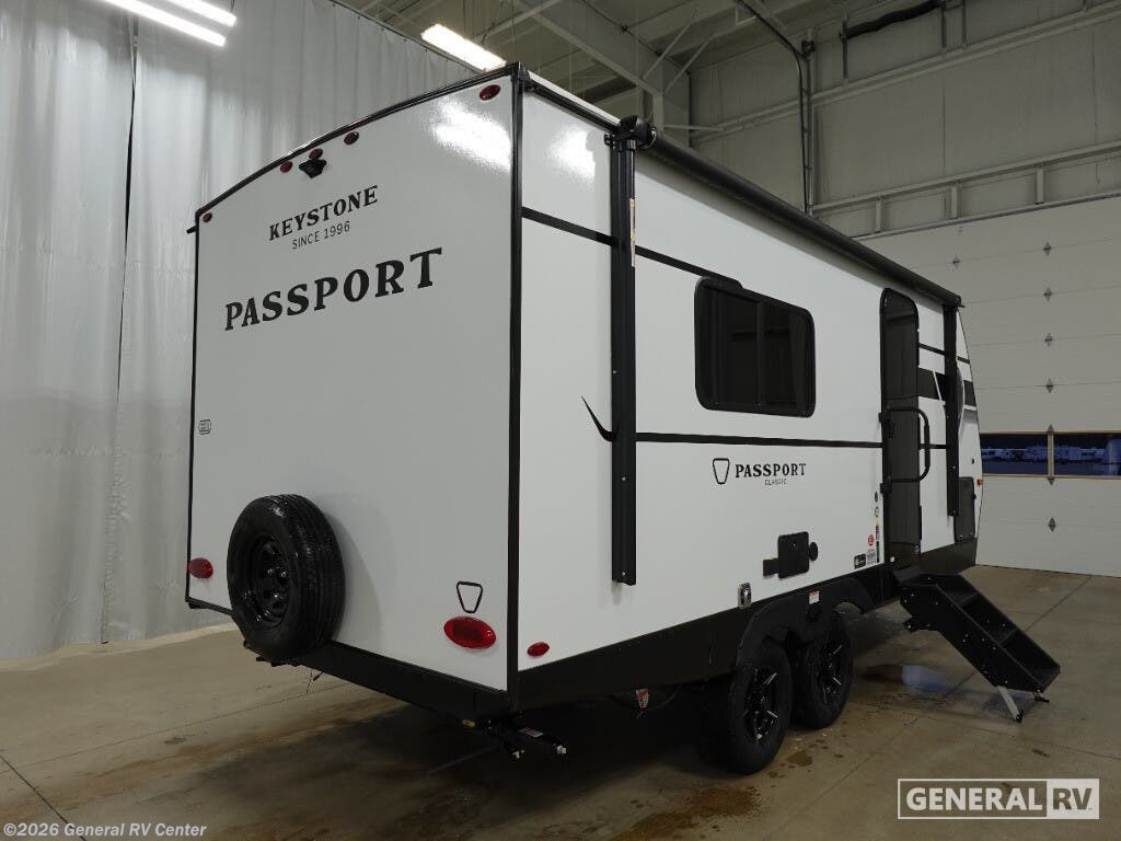The 2026 Keystone Passport Classic 180RBC is your ticket to adventure, offering a cozy and efficient space for travelers. This thoughtfully designed RV features a comfortable jackknife sofa that easily converts into extra sleeping space, perfect for accommodating guests or family. The cleverly integrated large LED TV ensures entertainment is always at your fingertips, making those rainy days just as enjoyable. Imagine preparing meals in the compact yet functional kitchen, equipped with a microwave and a 12-volt refrigerator to keep your essentials fresh. The layout maximizes every inch, with ample storage options including a wardrobe and pass-through storage, ensuring all your belongings have a place. Enjoy the convenience of a full bathroom with a shower, allowing you to freshen up after a day of exploration. Outside, the 14-foot awning provides a shaded retreat for relaxation or dining alfresco. Whether you're embarking on a weekend getaway or an extended road trip, the Passport Classic 180RBC is designed to enhance your travel experience with its blend of comfort and practicality. For more details or to see it in person, visit your nearest General RV dealership.