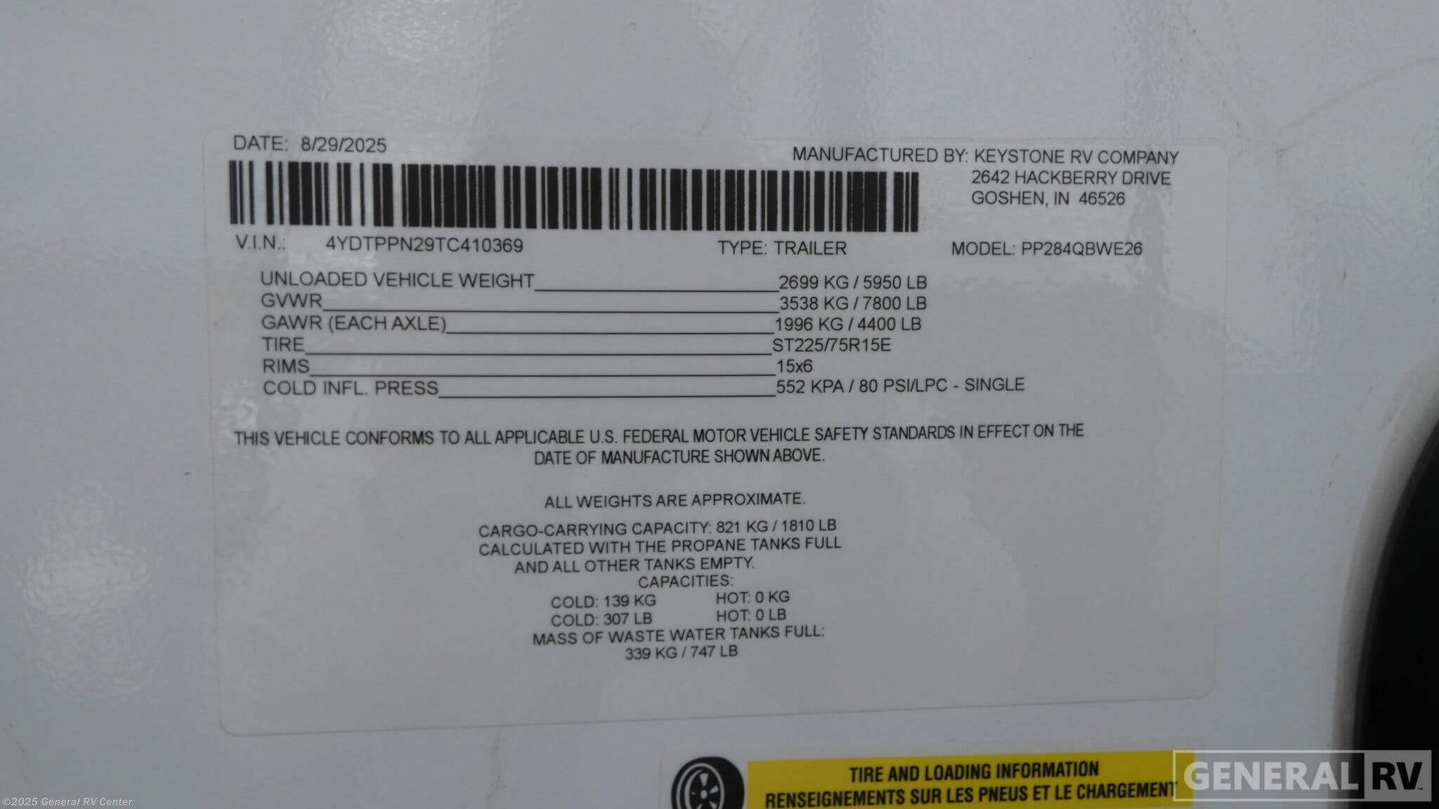 Discover the 2026 Keystone Passport Classic 284QBWE, where comfort meets adventure. This travel trailer is designed to accommodate up to ten people, making it perfect for family getaways or trips with friends. The thoughtful layout features double bunks, a cozy queen bed, and a versatile U-shaped dinette alongside a jackknife sofa, ensuring everyone has a comfortable place to rest after a day of exploration. The Passport Classic 284QBWE is not just about sleeping arrangements; it's about living well on the road. The kitchen area, complete with a refrigerator and microwave, invites you to whip up your favorite meals while enjoying the open space provided by the slide-out. The bathroom offers a convenient shower, and ample storage is available throughout, including pass-thru compartments for all your travel essentials. With a 32-foot length and a single slide, this RV strikes the perfect balance between spaciousness and maneuverability. To learn more, visit your nearest General RV dealership.