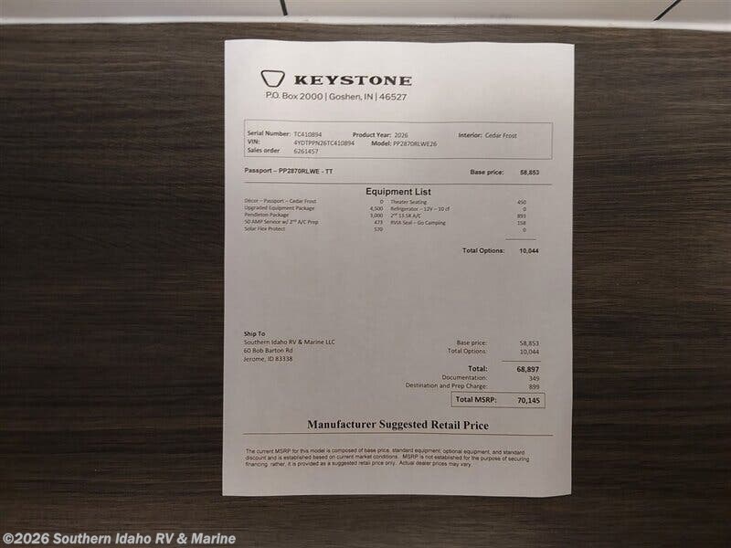 Request More Info on this 2026 Keystone Passport 2870RLWE Offered for sale by Southern Idaho RV & Marine