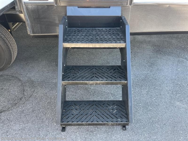 You will feel right at home in this travel trailer! The front private bedroom has a king bed slide to lay your head on at night, a front closet with washer and dryer prep, plus a dresser with a flip-up top and TV prep. Just outside the bedroom is the full bathroom with a shower with a skylight for added natural lighting as you get ready. Now that you're ready for the day, you can head to the fully equipped kitchen complete with a kitchen island to whip up some delicious cinnamon rolls that can be enjoyed at the Do-More Dinette table. The rear living area not only has luxury cinema recliners, but also a tri-fold sofa by an entertainment center with a fireplace!
