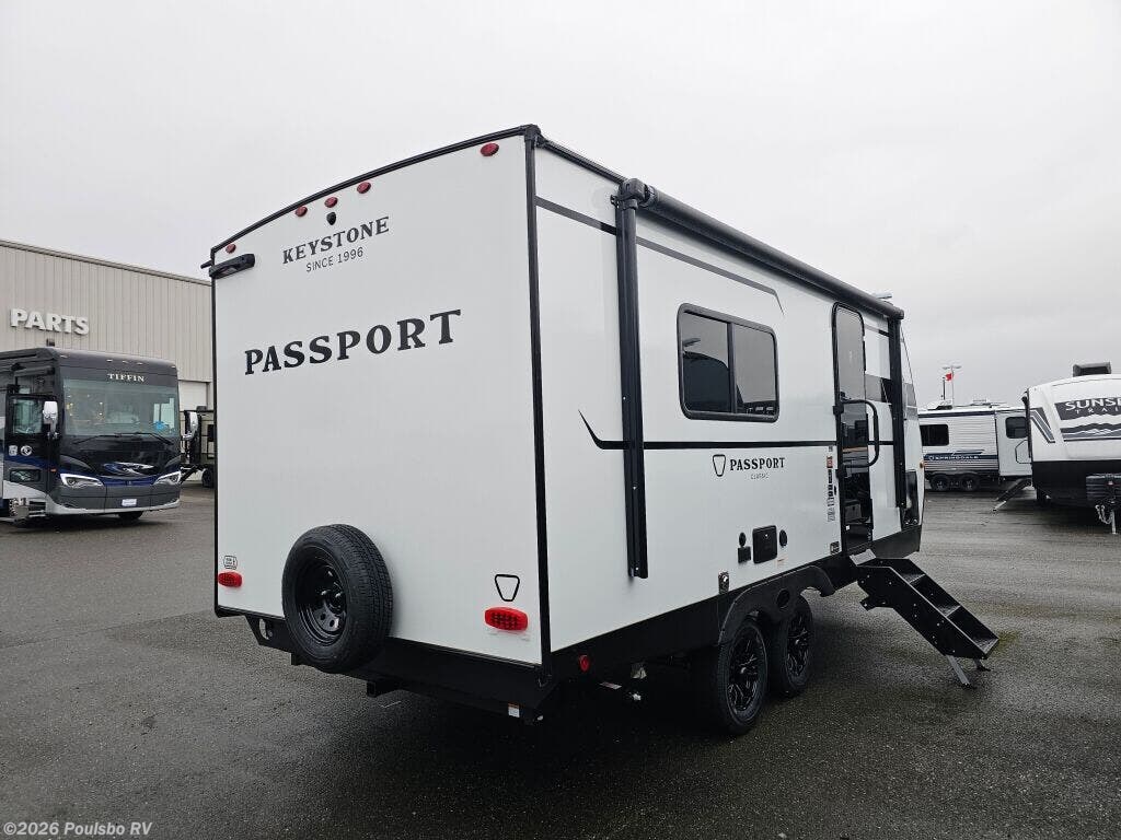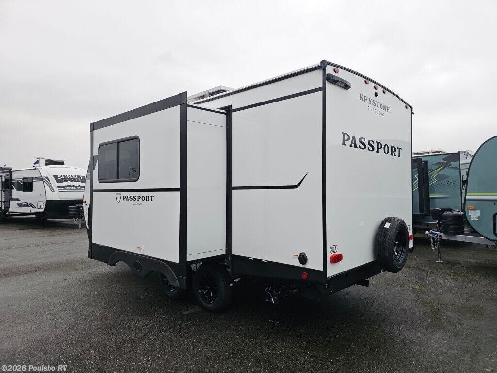 Experience the freedom and comfort of RV living with the 2026 Keystone Passport 180RBCWE. This new, compact travel trailer is designed to provide a perfect blend of convenience and flexibility for your adventures. With a length of 22.4 feet, it offers an easy-to-tow solution that does not compromise on space or amenities. Ideal for small families or couples, it comfortably sleeps up to four people, catering to your need for restful nights on the road. Step inside to discover a thoughtfully designed living area that maximizes space and functionality. The single slide out enhances the interior, making the living space more open and inviting for relaxing or entertaining. This model is equipped with an effective awning, providing outdoor shade and comfort to extend your living area outside. Easy leveling jacks simplify setup so you can spend more time enjoying your destination. The Keystone Passport 180RBCWE also includes a durable hitch with a weight of 460 pounds, ensuring stable towing and peace of mind during travel. Every feature of this model focuses on enhancing your RV experience by delivering reliable convenience and enjoyable living quarters. As a family-owned, award-winning local RV dealer with multiple locations in Sumner, Everett, Kent, and Mt. Vernon Washington, Poulsbo RV is here to help you find the perfect RV. Stock#: M3781, VIN: 4YDTPPH21TC411124.