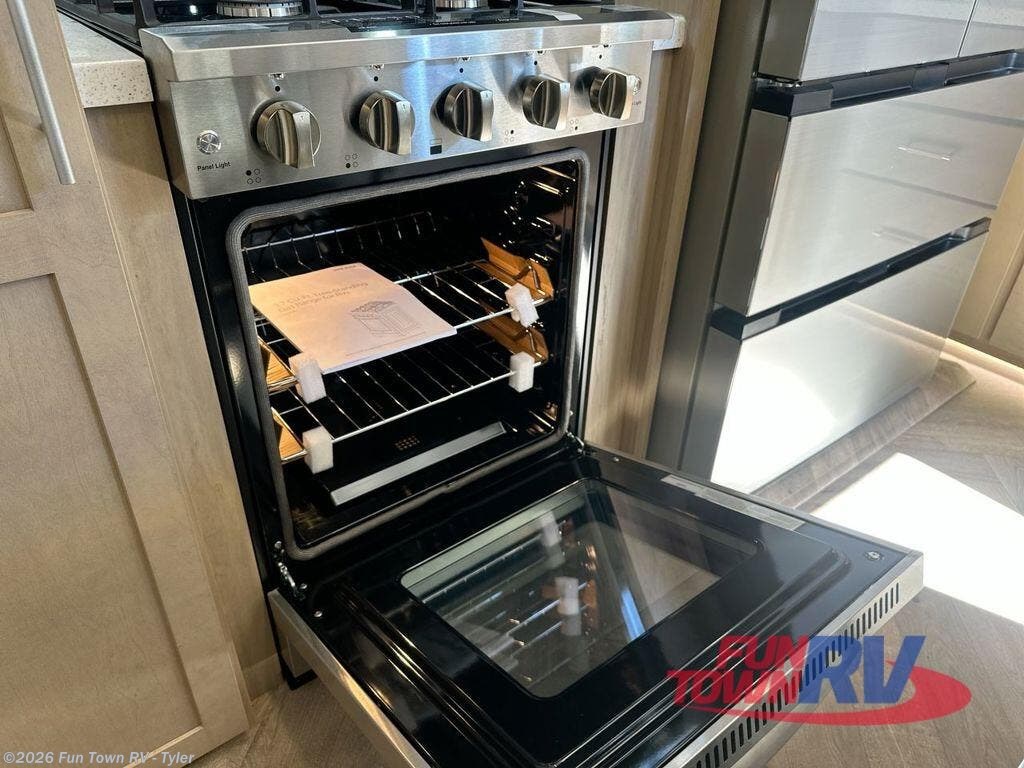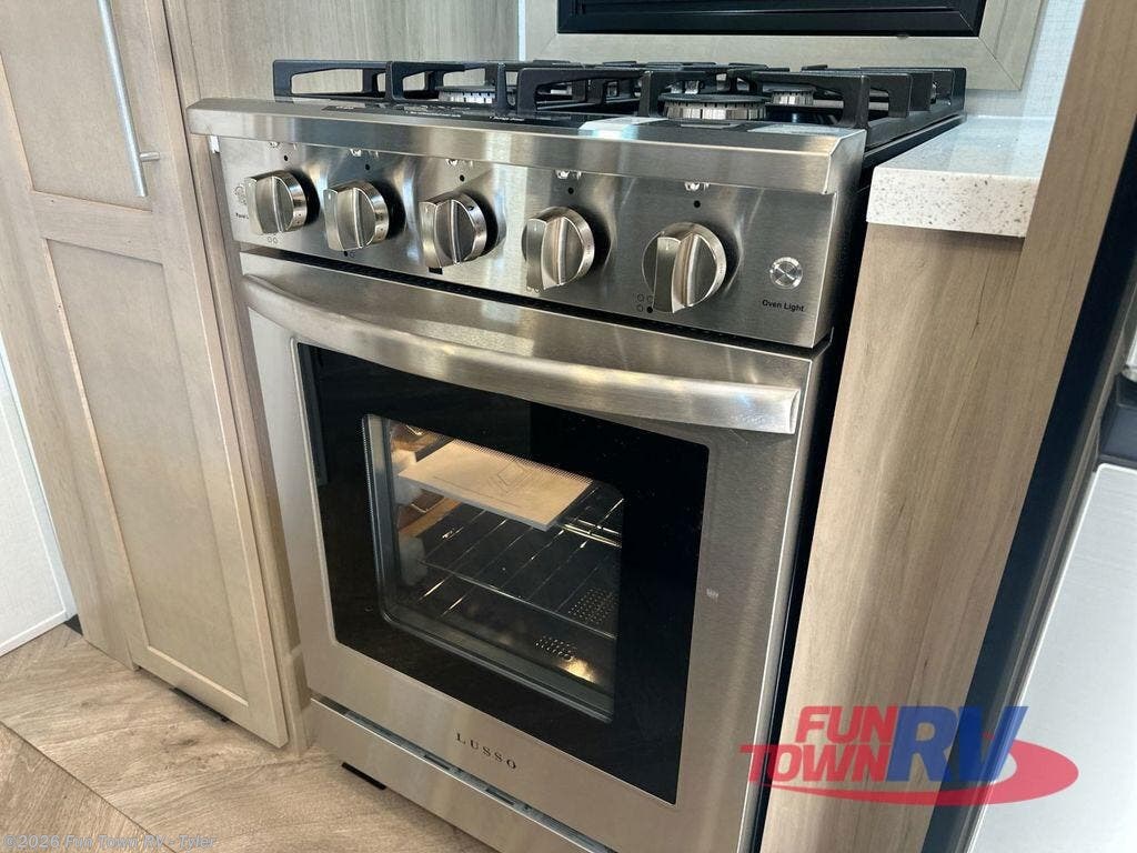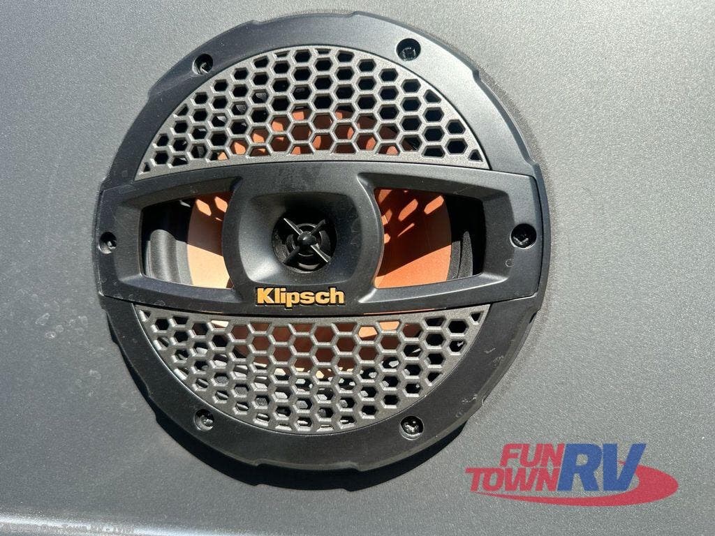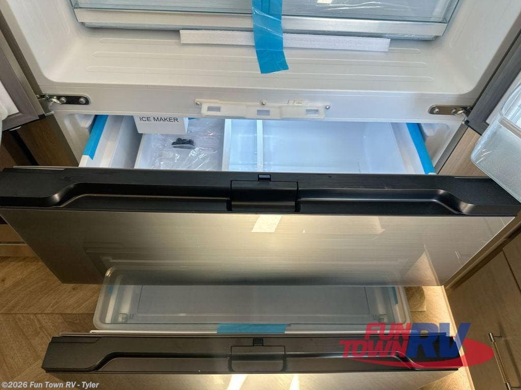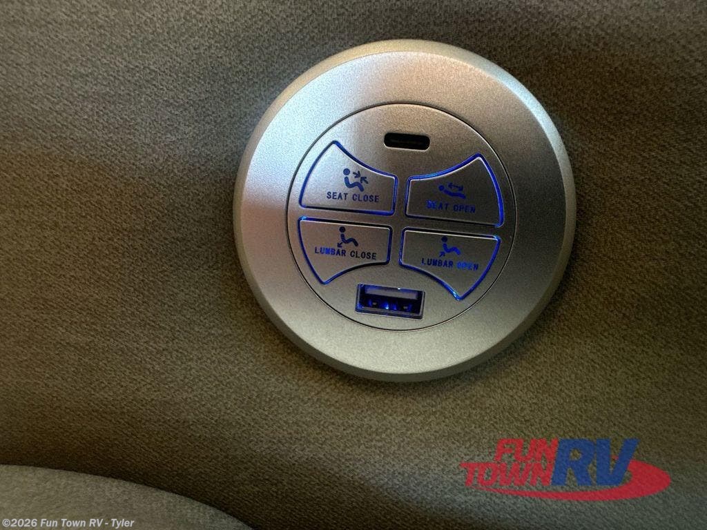 You will have everything you need for a comfortable camping trip and then some with this toy hauler! Load your toys into the 16' garage area with the Lippert Power Play motorized ramp door and secure them with 5,000 lb. frame welded tie-downs. The garage also has an electric bed above dual opposing sofas with a loft with a twin bed and a half bathroom. Create your best meals with the four-burner cooktop and enjoy the company of others sitting at the kitchen island with three bar stools while you prepare it. Relax in true comfort on the 4-seat recliner across from the entertainment center with a fireplace. When you're ready to wind down your nights, take a hot shower in the full bathroom then head directly into the front private bedroom which features a king bed suite with a large front wardrobe for clothing storage, and washer/dryer prep in case you wish to add appliances so you can wash your clothes while you are away!