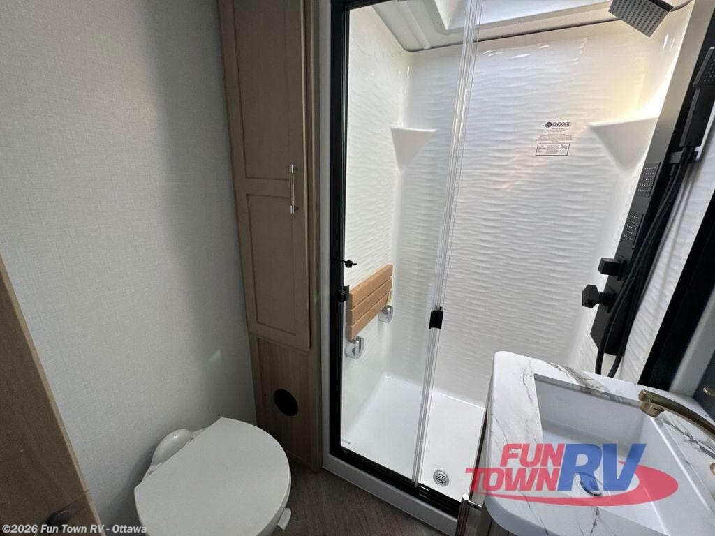 There's room for everyone in this toy hauler! The front private bedroom has a king bed slide for more interior space, a Smart LED TV, a front large wardrobe, plus washer and dryer prep. With two full bathrooms, it will be easy for everyone to get the mud rinsed out of their hair after a fun time on the trails. Start each morning off with a belly full of eggs cooked on the four-burner range and cinnamon rolls baked in the 24" stainless steel oven. Grab a cold cup of orange juice from the 20-cu. ft. 12-volt refrigerator and enjoy it along with the eggs at the dinette table or in the 13' 6" garage on one of the dual opposing sofas with table in between. The L-shaped sofa is conveniently across from the entertainment center with a 50" Smart LED TV and fireplace. As you head into the 13' 6" garage area, you will notice a loft with twin bed, an electric bed above the opposing sofas, Adjust-A-Track frame welded tie-downs, a full bathroom, and one of the dual entry doors to the unit!