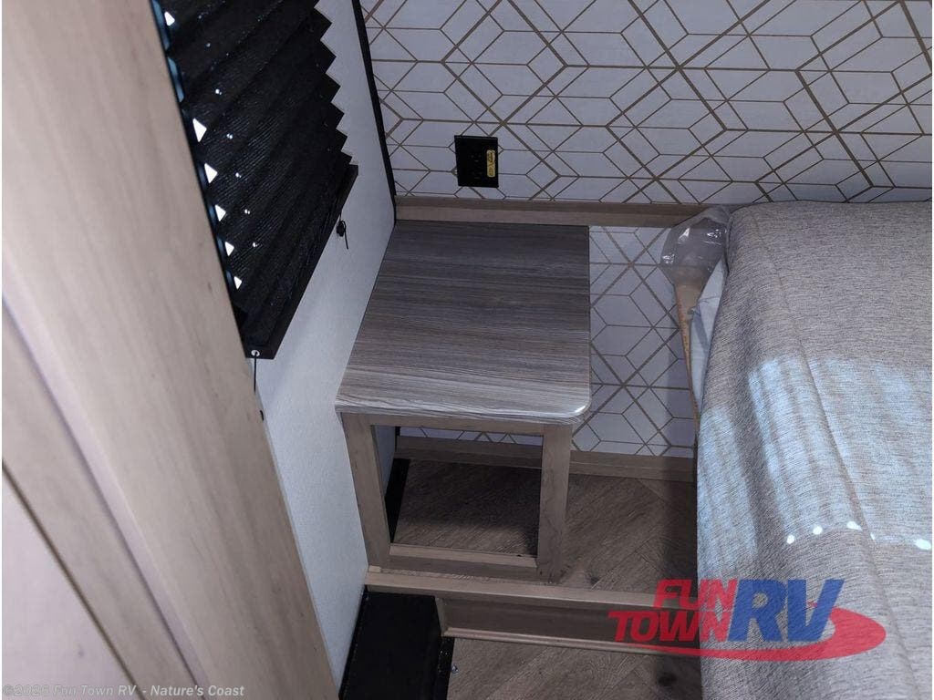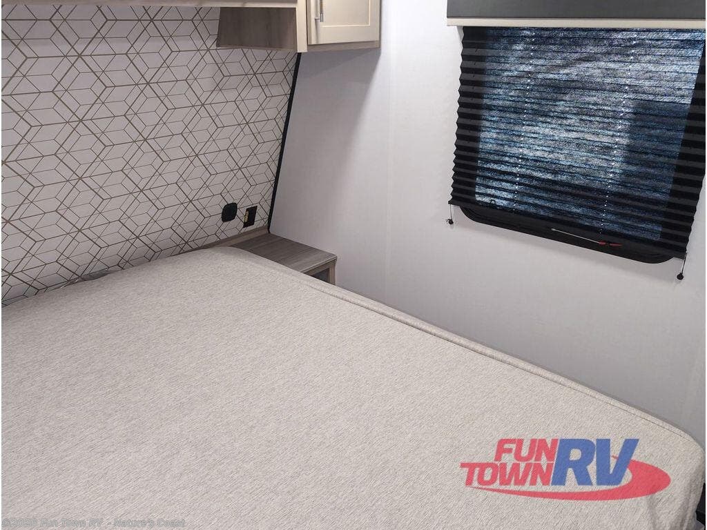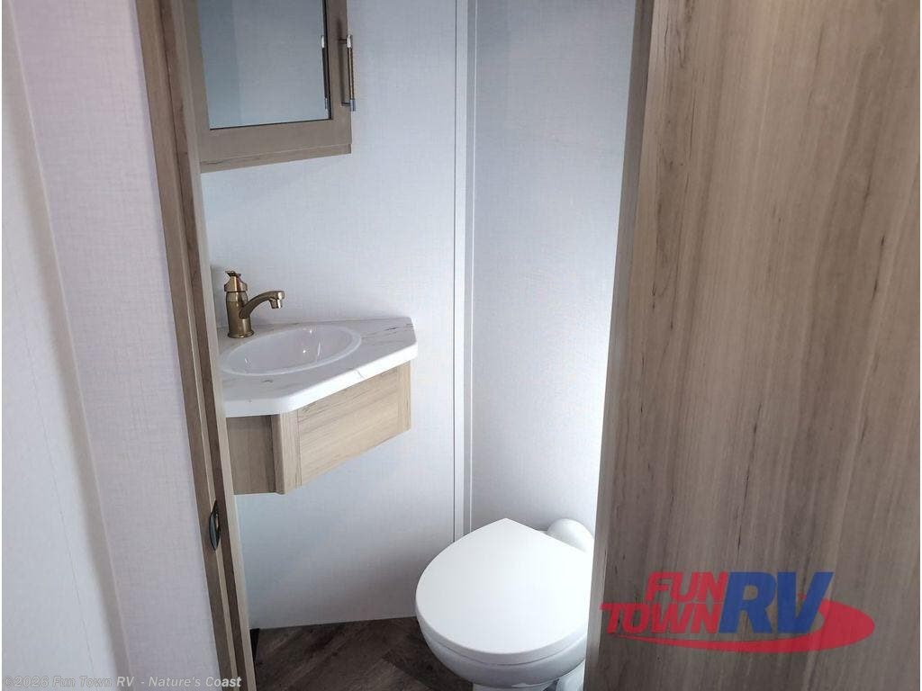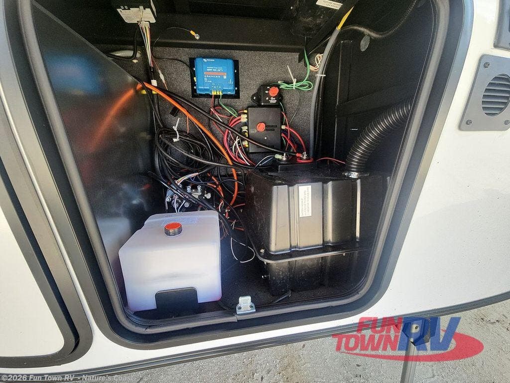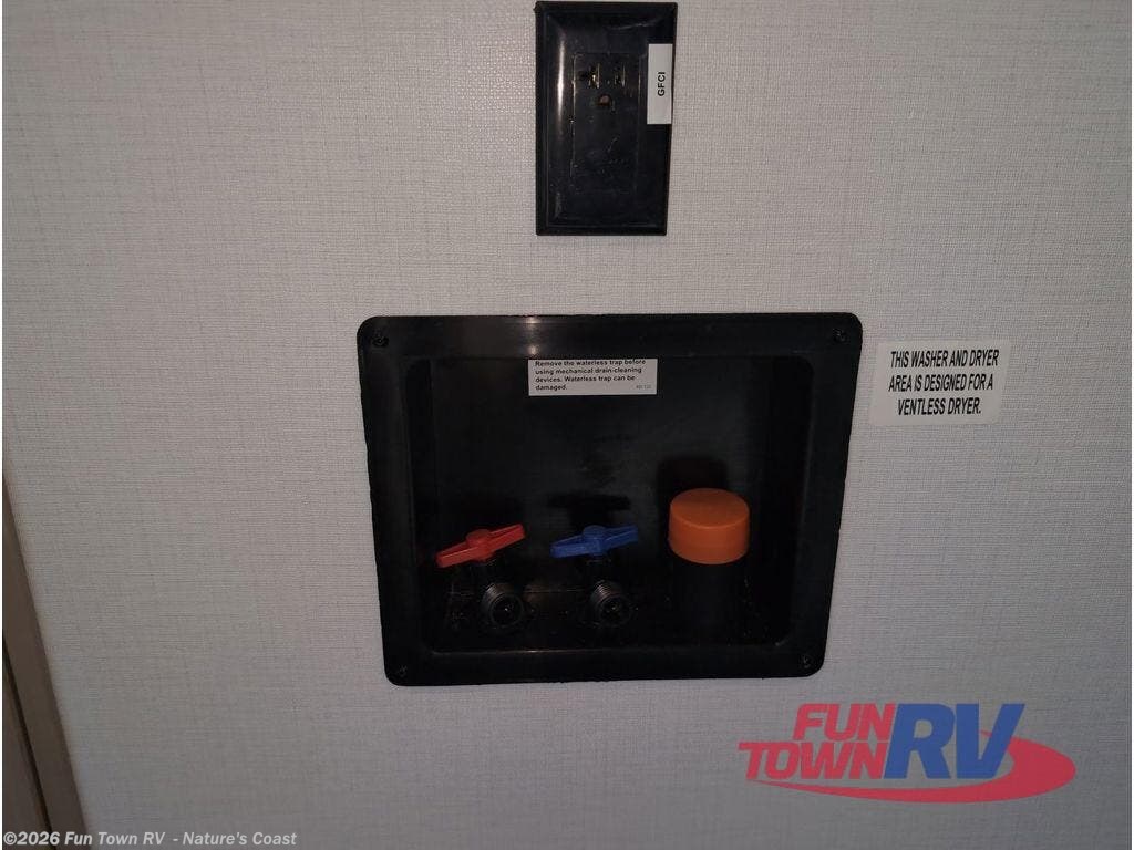 Featuring a spacious king bed with nightstands on each side, this front private bedroom will be your favorite spot to rest! The wardrobe with drawers provides ample storage for your clothes and personal items, helping you stay organized on the road. The bath and a half layout provides convenience and flexibility, ensuring that everyone has their own space to get ready in the morning. The living area is a vibrant hub of entertainment, featuring a reclining sofa with lumbar support and a tilting headrest. The state-of-the-art entertainment center with smart LED TV provides endless hours of fun, while the microwave and sink make meal prep a snap. Further, the garage is designed for ultimate adventure, with ample space for your favorite toys and an electric bed with dual opposing sofas that convert into a comfortable sleeping area.