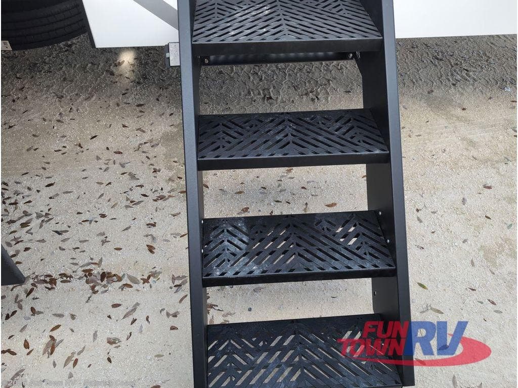 With any Keystone Raptor Carbon Series toy hauler fifth wheel, you will enjoy a new chassis with a larger pass-through storage and a new front cap with LED lighting. There is also an upgraded MORryde CRE3000 suspension, a 6-point hydraulic Level-Up system, and a Nautilus exterior convenience center to easily access all your hookups. Inside, you'll love the hardwood soft-close cabinet doors, pressed countertops, and Thomas Payne furniture. The Extreme Weather Package will add protection against the elements, and the on-demand tankless water heater will provide endless hot showers!