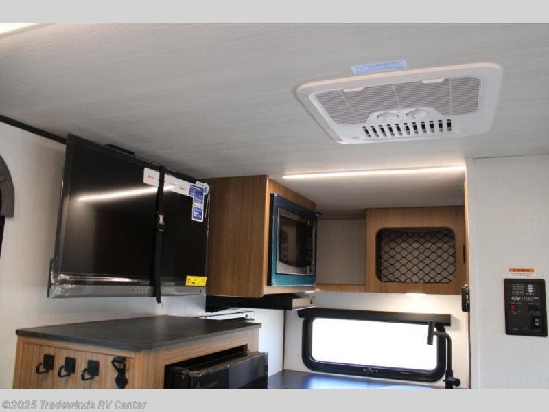 This travel trailer is ideal for weekend getaways or extended road trips! The full bathroom provides all the amenities you need, while the spacious 54" X 74" bed ensures a restful night's sleep. Moreover, overhead cabinets offer ample storage for your belongings, and the TV provides entertainment for downtime. The refrigerator keeps your favorite snacks and drinks fresh, and additional overhead cabinets offer extra storage. In addition, the 9' awning provides shade and protection from the elements, creating a comfortable outdoor living space.