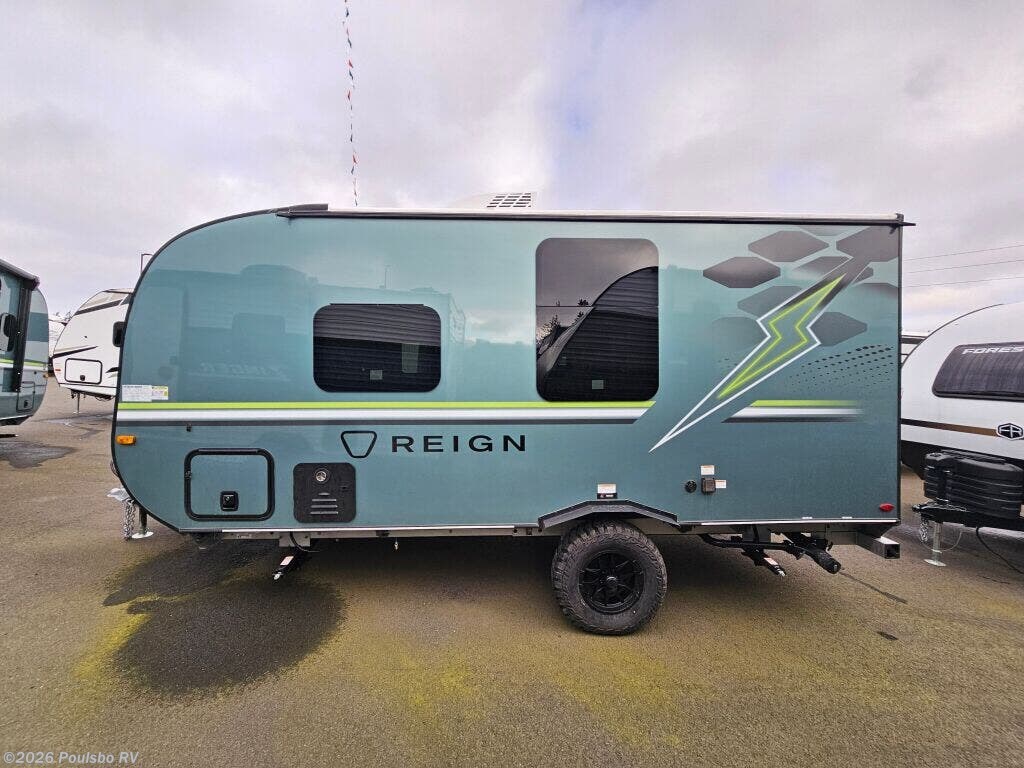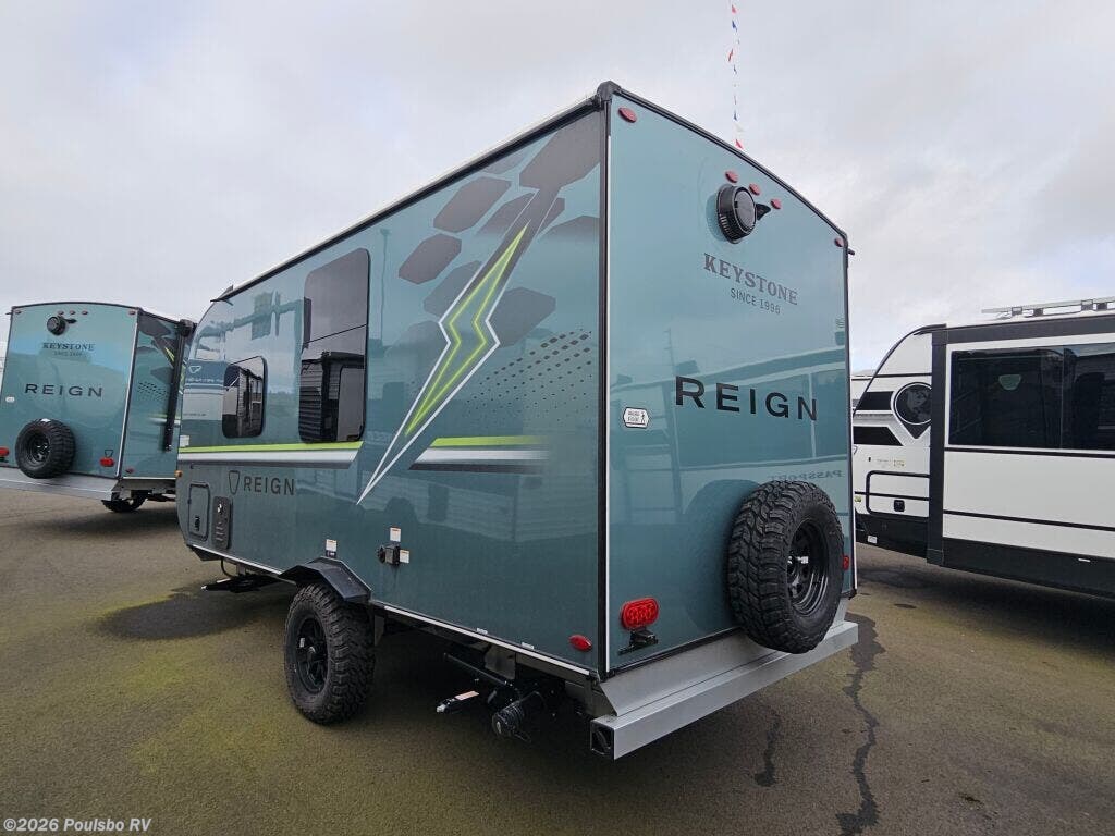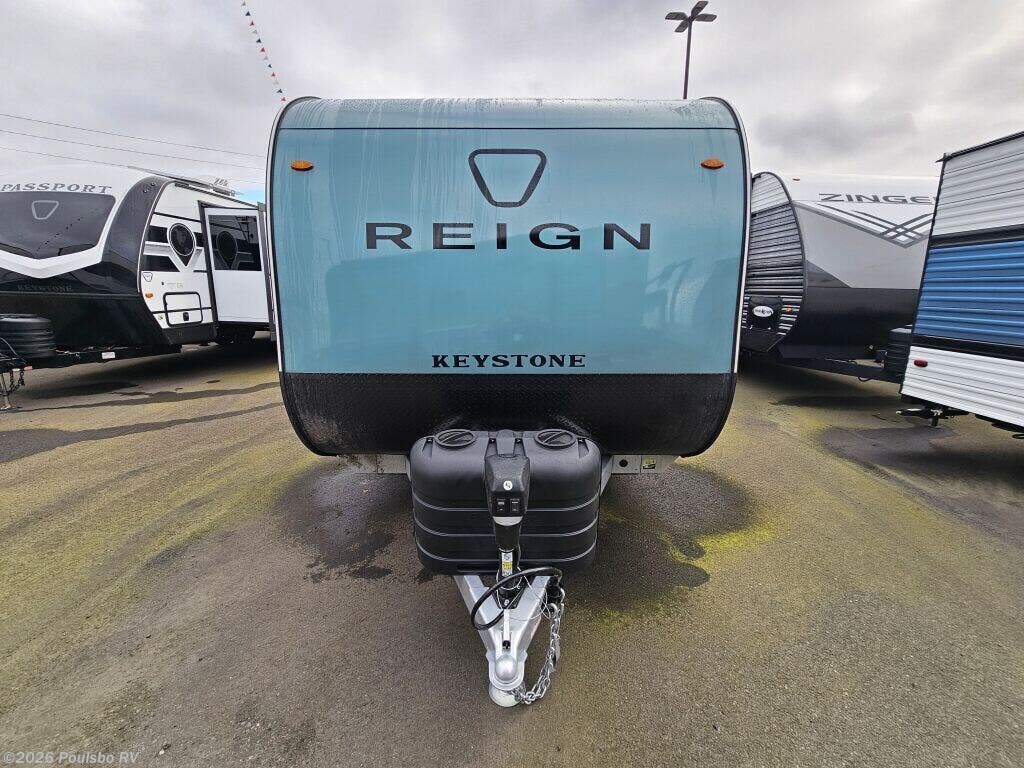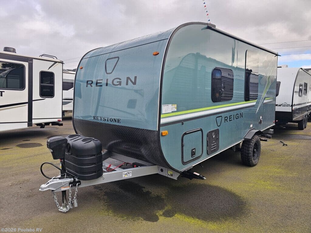 The 2026 Keystone Reign 15RB is a brand new compact travel trailer designed to deliver a comfortable and convenient RVing experience. With a length just over 20 feet, it offers an ideal balance of mobility and livability, perfect for adventurers seeking flexibility without compromising on essential features. This model does not include slide-outs but maximizes interior space efficiently to provide a welcoming living area. Inside, you will find thoughtful design elements that support a relaxing getaway, including practical sleeping accommodations that allow you to recharge after outdoor fun. Its sturdy construction comes with front and rear manual leveling jacks, helping you set up your campsite with ease and stability. The Reign 15RB weighs 3348 pounds dry, making it accessible for many tow vehicles, and its hitch weight is 345 pounds. As a lightweight yet durable option, it ensures smooth travel to your favorite destinations. Audio amenities and other convenience features contribute to an enjoyable stay so you can focus on the pleasure of the journey. Keystone has crafted this model to meet the needs of RV enthusiasts looking for a reliable and user-friendly trailer. As a family owned, award winning local RV dealer with multiple locations in Sumner, Everett, Kent, and Mt Vernon Washington, Poulsbo RV is here to help you find the perfect RV. Stock#: K6253, VIN: 4YDTRNG13TD460343.
