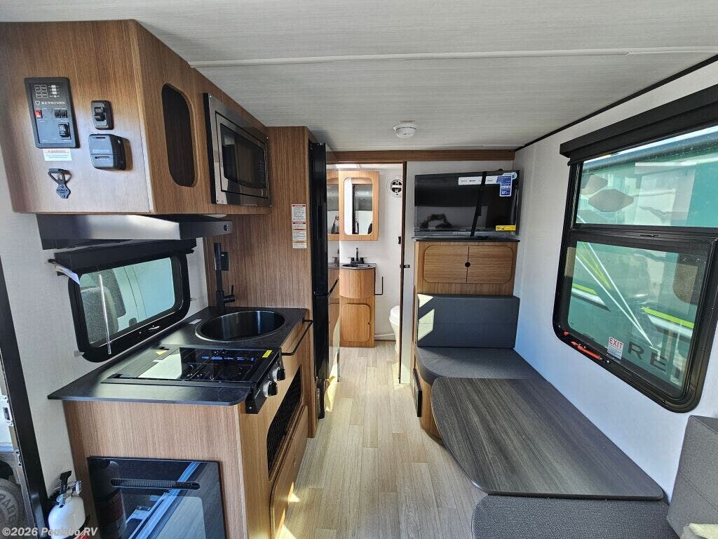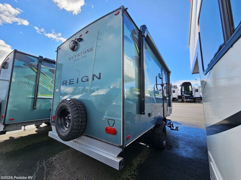 The 2026 Keystone Reign 15RB is a compact, new travel trailer designed to deliver a seamless RVing experience. Measuring just over 20 feet in length, this model offers a versatile living space that adapts to your needs. Inside, the floor plan maximizes comfort without the complexity of slide outs or bunk beds, providing a spacious and open environment for relaxation and socializing. Its thoughtful design focuses on simplicity and efficiency, making it easy to maneuver and set up at your favorite destinations. The living area invites you to unwind with ample seating and practical layout, perfect for enjoying quality time on the road or at the campsite. Convenience features include front and rear manual leveling jacks to help stabilize your RV quickly on uneven terrain, ensuring a safe and comfortable stay. With a gross vehicle weight rating (GVWR) of 4,345 pounds and a dry weight of 3,348 pounds, this model balances durability and towability, supported by a hitch weight of 345 pounds to keep your towing setup stable. Whether you are embarking on a weekend getaway or a longer adventure, this Keystone model provides a reliable and welcoming base. As a family-owned, award-winning local RV dealer with multiple locations in Sumner, Everett, Kent, and Mt Vernon Washington, Poulsbo RV is here to help you find the perfect RV. Stock#: K6254, VIN: 4YDTRNG15TD460344.