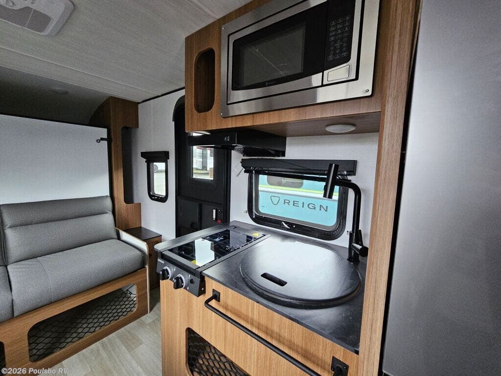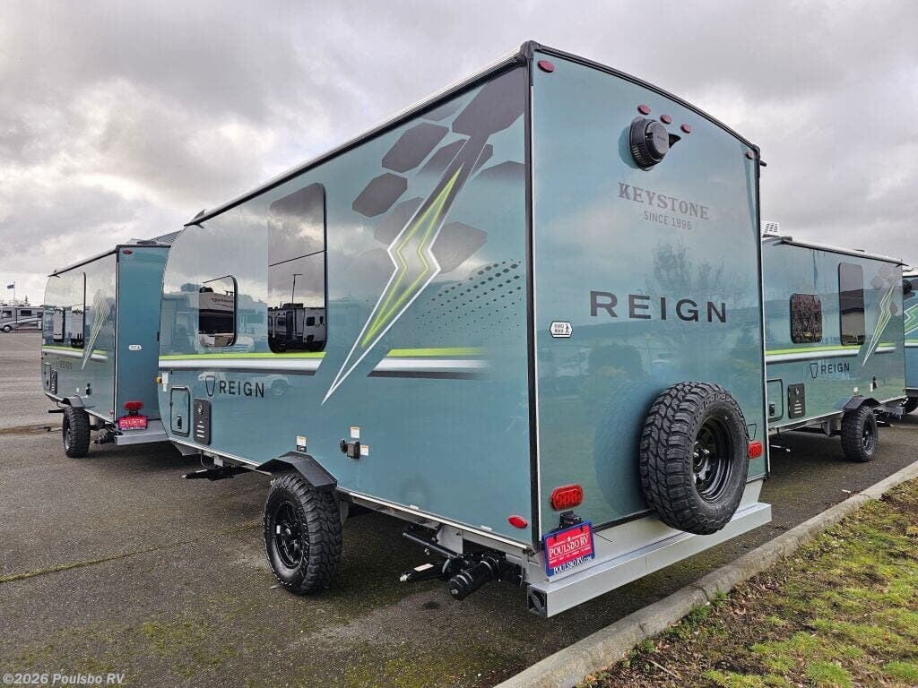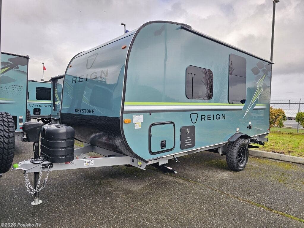 The 2026 Keystone Reign 15RB offers a perfectly sized, new travel trailer designed for travelers looking to enjoy the freedom of the open road without sacrificing comfort. With an overall length of just over 20 feet, this compact yet efficient model provides a comfortable living area that maximizes space and functionality. The Reign 15RB sleeps up to three people, making it ideal for solo adventurers, couples, or small families seeking memorable camping experiences. Despite its modest size, this unit features a convenient awning, allowing you to create a shaded outdoor space for relaxation and socializing wherever you park. The absence of slide outs simplifies travel and setup, while the front and rear manual leveling jacks ensure stability and ease when parking on uneven surfaces. Inside, you will find a well-thought-out layout that emphasizes comfort and practicality, enhancing your time spent inside the RV. The lightweight design with a dry weight of 3348 pounds and a hitch weight of 345 pounds allows for easier towing and fuel efficiency. Whether you are hitting a local campground or embarking on a longer trip, the Keystone Reign 15RB delivers a blend of convenience, cozy sleeping accommodations, and essential features to support your travel lifestyle. Enjoy the confidence that comes with a new, thoughtfully engineered RV built to help you explore and create lasting memories with ease and style. As a family-owned, award-winning local RV dealer with multiple locations in Sumner, Everett, Kent, and Mt. Vernon Washington, Poulsbo RV here to help you find the perfect RV. Stock#: M3796, VIN: 4YDTRNG17TD460345.