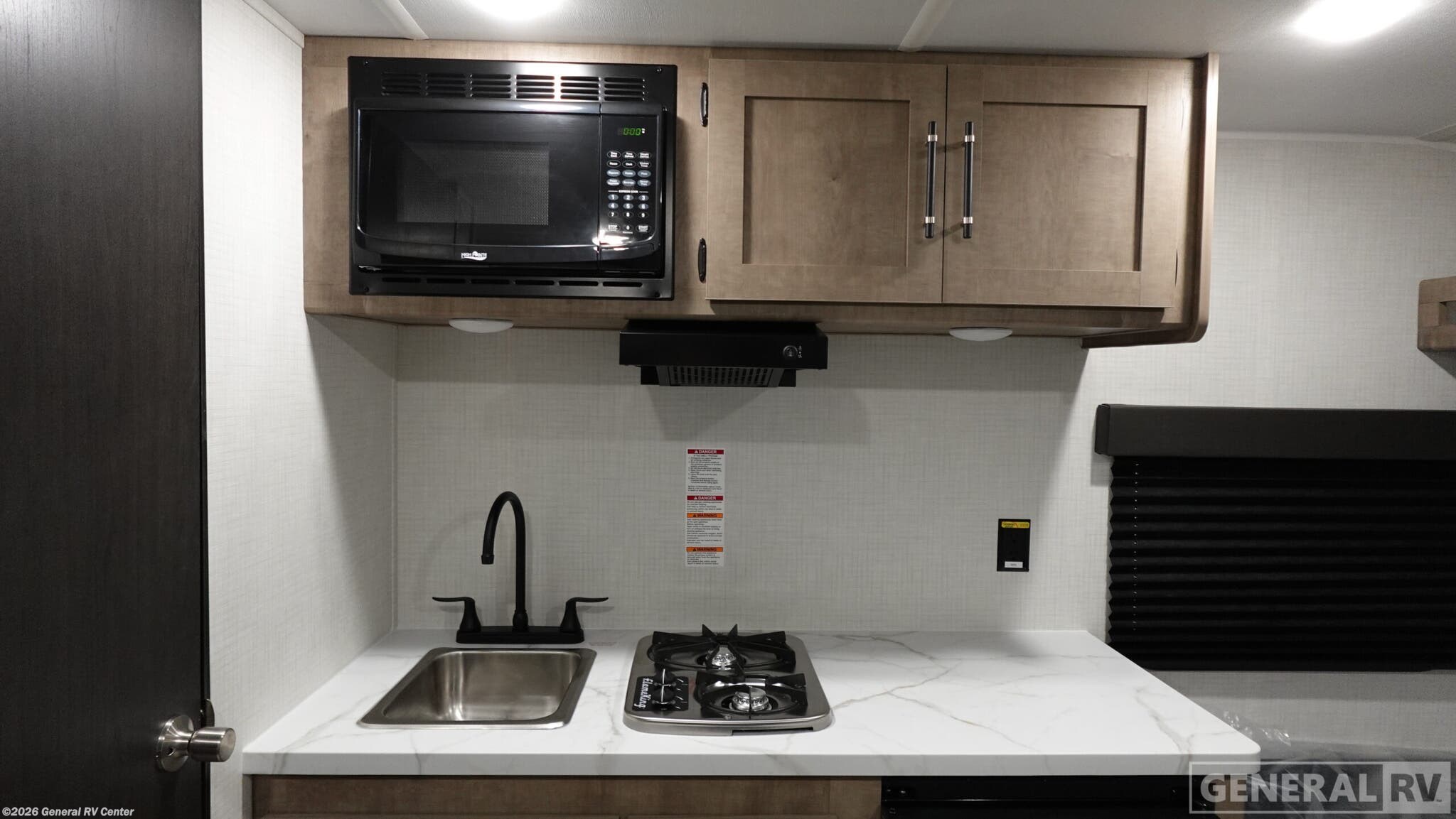 Keystone Springdale Mini travel trailer 1200BT highlights: -Full-Size Bed -Exterior Pass-Thru Storage -3.3 Cu. Ft. 12V Refrigerator -Bar Table This lightweight travel trailer is perfect for a couple. You'll enjoy the front full-size bed, with a shelf above the bed to keep your things organized. A private bath includes a shower with a toilet so you can freshen up each day without having to leave your camper. You can make your meals on the two burner gas cooktop or in the microwave oven, then take your plate outdoors to eat under the 8' power awning! With any Springdale Mini travel trailer by Keystone, you will enjoy lightweight towing thanks to their single-axle! The 8' power awning will provide protection from the sun as you relax in your camp chairs outside. Each model includes blackout night shades, LED lighting, decorative tub surround, plus many more interior comforts. There is also a roof A/C and 20K BTU furnace to keep you comfortable, plus a tankless water heater for endless hot showers after a long day of adventuring!