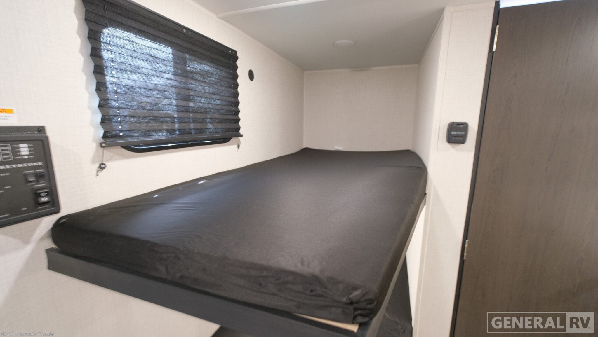 Keystone Springdale Mini travel trailer 1230BB highlights: -Full-Size Bed -Exterior Pass-Thru Storage -3.3 Cu. Ft. 12V Refrigerator -Bunk Beds This lightweight travel trailer is perfect for four happy campers. You'll enjoy the front full-size bed, while your guests or little ones take the bunk beds. There is also a shelf above the bed to keep your things organized. A private bath includes a shower with a toilet so you can freshen up each day without having to leave your camper. You can make your meals on the two burner gas cooktop or in the microwave oven, then take your plate outdoors to eat under the 8' power awning! With any Springdale Mini travel trailer by Keystone, you will enjoy lightweight towing thanks to their single-axle! The 8' power awning will provide protection from the sun as you relax in your camp chairs outside. Each model includes blackout night shades, LED lighting, decorative tub surround, plus many more interior comforts. There is also a roof A/C and 20K BTU furnace to keep you comfortable, plus a tankless water heater for endless hot showers after a long day of adventuring!