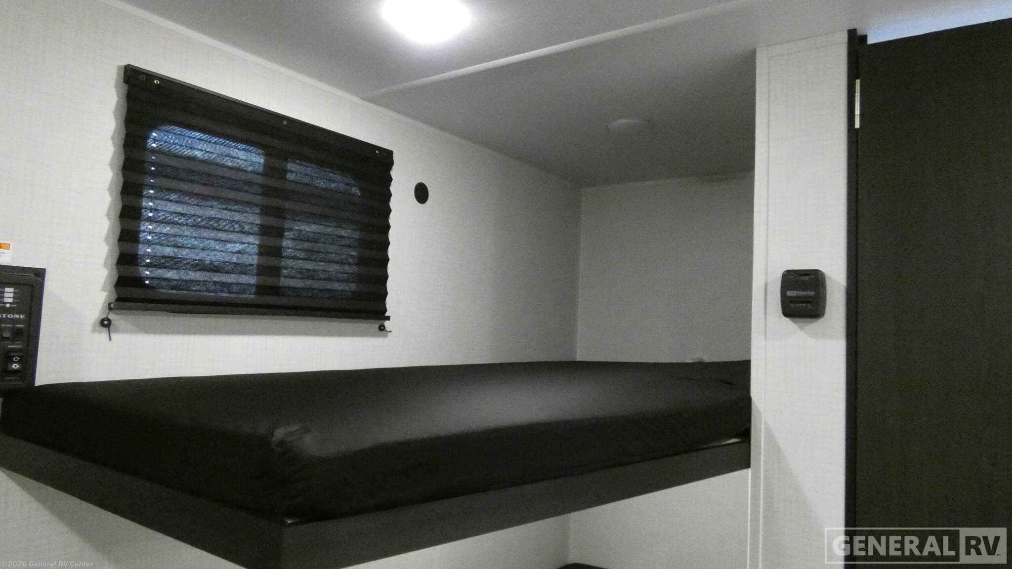 Keystone Springdale Mini travel trailer 1230BB highlights: -Full-Size Bed -Exterior Pass-Thru Storage -3.3 Cu. Ft. 12V Refrigerator -Bunk Beds This lightweight travel trailer is perfect for four happy campers. You'll enjoy the front full-size bed, while your guests or little ones take the bunk beds. There is also a shelf above the bed to keep your things organized. A private bath includes a shower with a toilet so you can freshen up each day without having to leave your camper. You can make your meals on the two burner gas cooktop or in the microwave oven, then take your plate outdoors to eat under the 8' power awning! With any Springdale Mini travel trailer by Keystone, you will enjoy lightweight towing thanks to their single-axle! The 8' power awning will provide protection from the sun as you relax in your camp chairs outside. Each model includes blackout night shades, LED lighting, decorative tub surround, plus many more interior comforts. There is also a roof A/C and 20K BTU furnace to keep you comfortable, plus a tankless water heater for endless hot showers after a long day of adventuring!