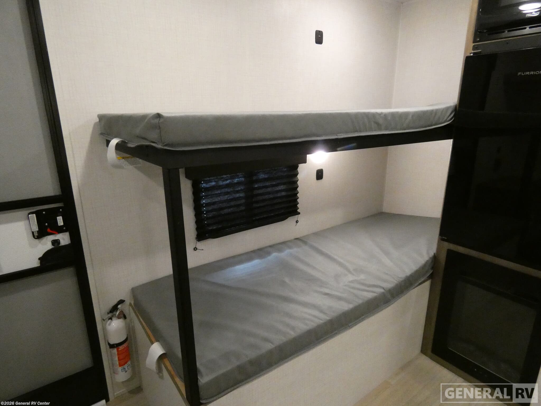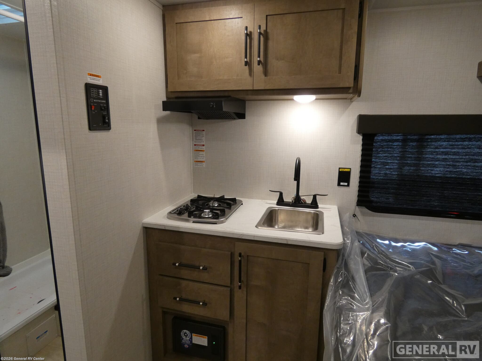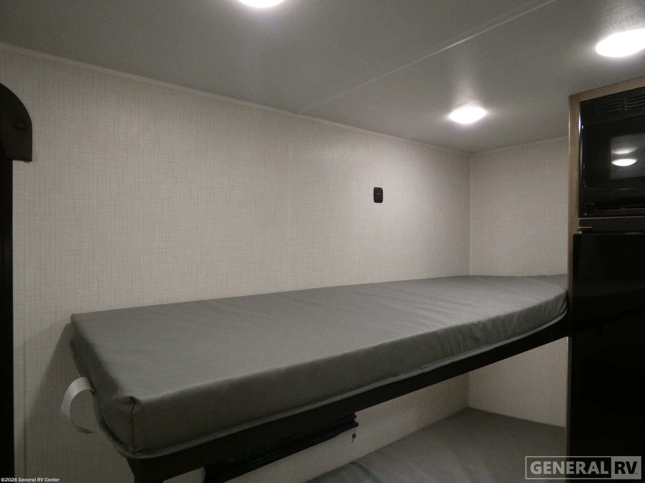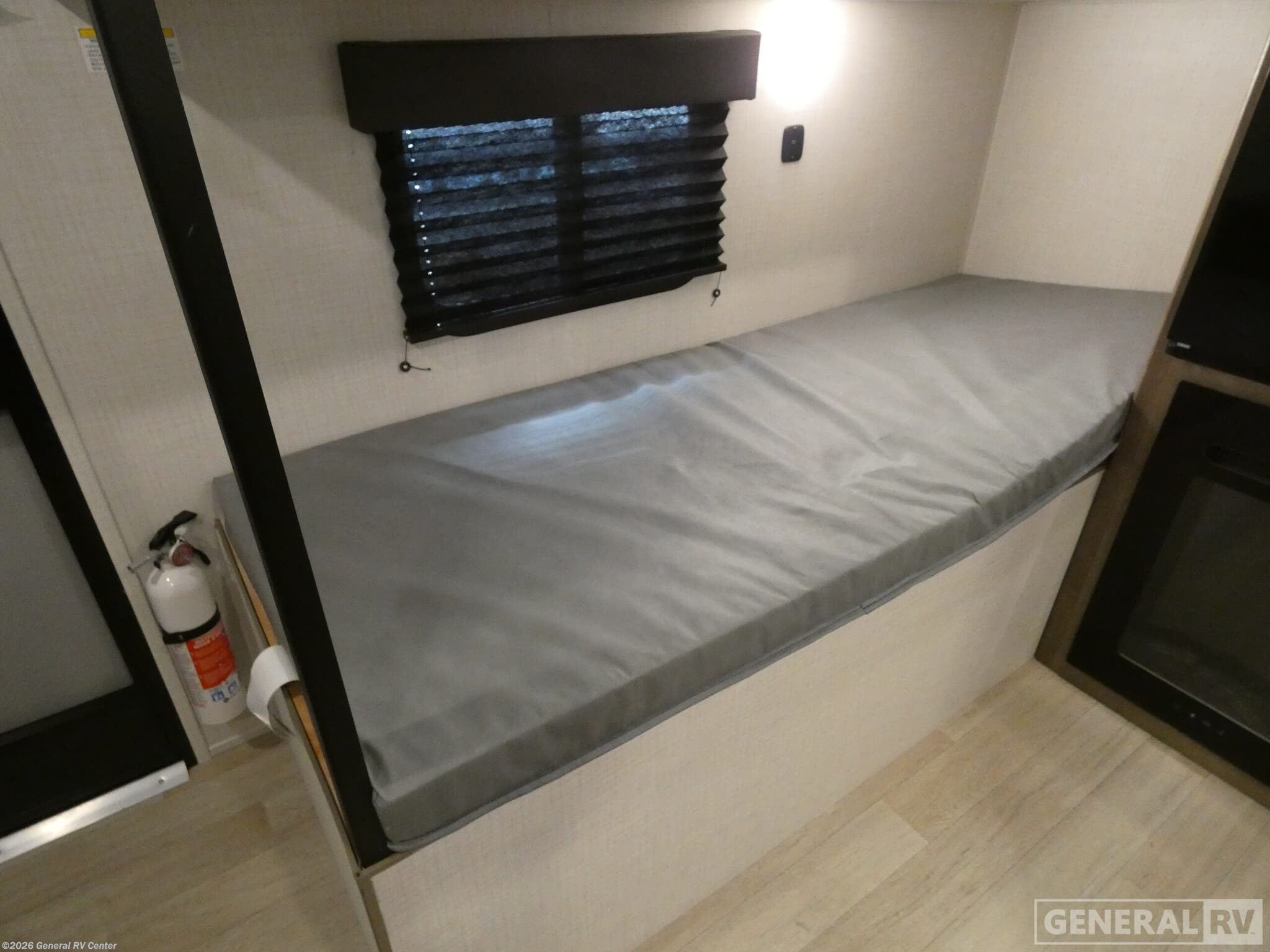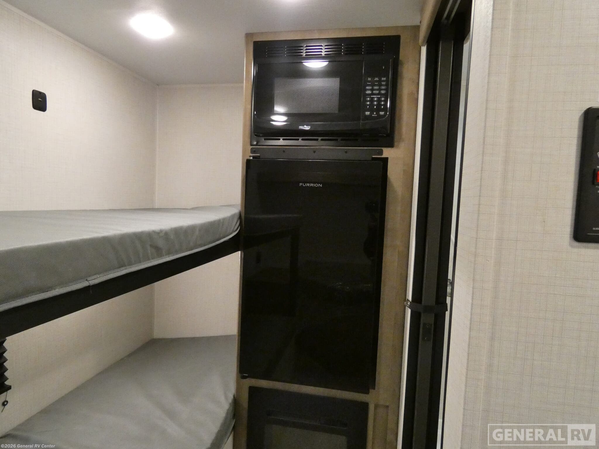This lightweight travel trailer is perfect for four happy campers. You'll enjoy the front full-size bed, while your guests or little ones take the 28" x 74" bunk beds. There is also a shelf above the bed to keep your things organized. A private bath includes a shower with a toilet so you can freshen up each day without having to leave your camper. You can make your meals on the two burner gas cooktop or in the microwave oven, then take your plate outdoors to eat under the 8' power awning! With any Springdale Mini travel trailer by Keystone, you will enjoy lightweight towing thanks to their single-axle! The AlphaPly TPO roof membrane is ultra durable, and the power awning will provide protection from the sun as you relax in your camp chairs outside. Each model includes blackout night shades, LED lighting, plus many more interior comforts. There is also a roof A/C and 20K BTU furnace to keep you comfortable, plus a tankless water heater for endless hot showers!