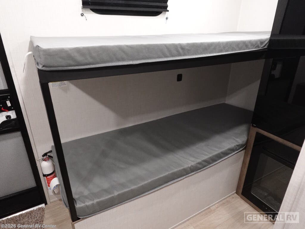 ## Keystone Springdale Mini travel trailer 1300BH highlights: - Full-Size Bed - Exterior Pass-Thru Storage - 3.3 Cu. Ft. 12V Refrigerator - Bunk Beds This lightweight travel trailer is perfect for four happy campers. You'll enjoy the front full-size bed, while your guests or little ones take the 28" x 74" bunk beds. There is also a shelf above the bed to keep your things organized. A private bath includes a shower with a toilet so you can freshen up each day without having to leave your camper. You can make your meals on the two burner gas cooktop or in the microwave oven, then take your plate outdoors to eat under the 8' power awning! With any Springdale Mini travel trailer by Keystone, you will enjoy lightweight towing thanks to their single-axle! The AlphaPly TPO roof membrane is ultra durable, and the power awning will provide protection from the sun as you relax in your camp chairs outside. Each model includes blackout night shades, LED lighting, plus many more interior comforts. There is also a roof A/C and 20K BTU furnace to keep you comfortable, plus a tankless water heater for endless hot showers!
