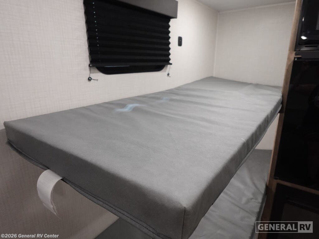 ## Keystone Springdale Mini travel trailer 1300BH highlights: - Full-Size Bed - Exterior Pass-Thru Storage - 3.3 Cu. Ft. 12V Refrigerator - Bunk Beds This lightweight travel trailer is perfect for four happy campers. You'll enjoy the front full-size bed, while your guests or little ones take the 28" x 74" bunk beds. There is also a shelf above the bed to keep your things organized. A private bath includes a shower with a toilet so you can freshen up each day without having to leave your camper. You can make your meals on the two burner gas cooktop or in the microwave oven, then take your plate outdoors to eat under the 8' power awning! With any Springdale Mini travel trailer by Keystone, you will enjoy lightweight towing thanks to their single-axle! The AlphaPly TPO roof membrane is ultra durable, and the power awning will provide protection from the sun as you relax in your camp chairs outside. Each model includes blackout night shades, LED lighting, plus many more interior comforts. There is also a roof A/C and 20K BTU furnace to keep you comfortable, plus a tankless water heater for endless hot showers!
