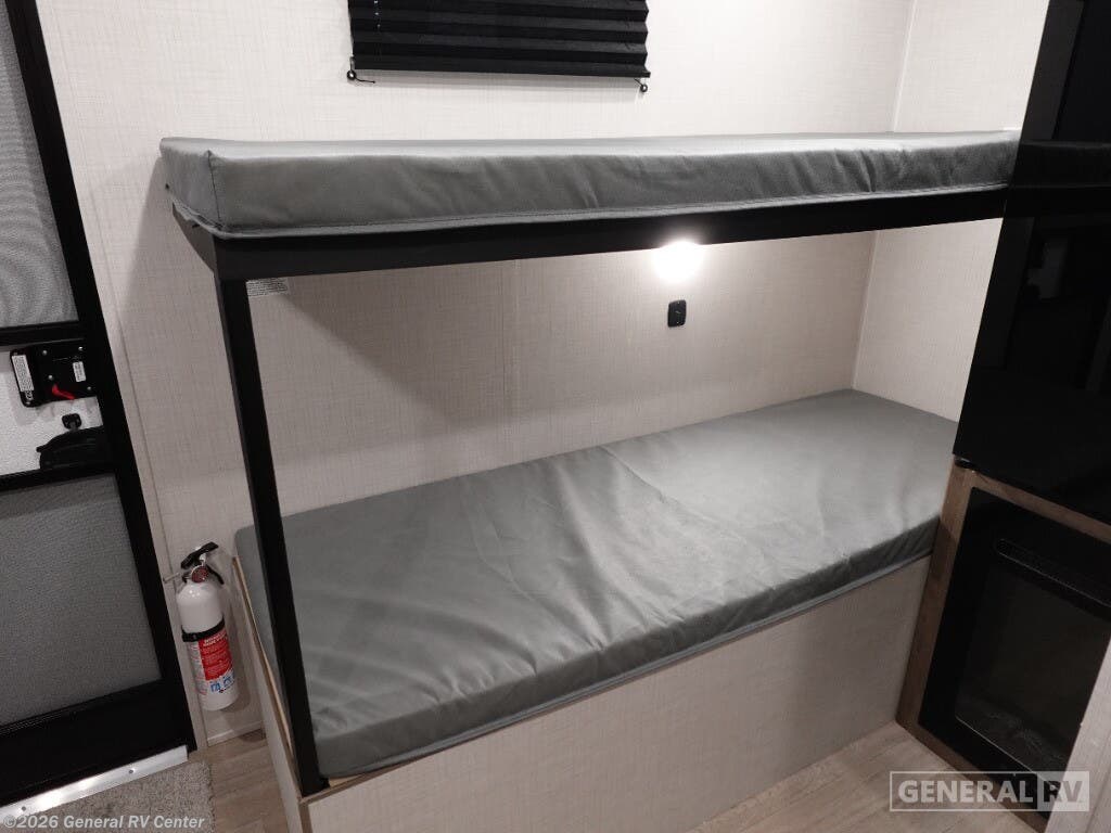 ## Keystone Springdale Mini travel trailer 1300BH highlights: - Full-Size Bed - Exterior Pass-Thru Storage - 3.3 Cu. Ft. 12V Refrigerator - Bunk Beds This lightweight travel trailer is perfect for four happy campers. You'll enjoy the front full-size bed, while your guests or little ones take the 28" x 74" bunk beds. There is also a shelf above the bed to keep your things organized. A private bath includes a shower with a toilet so you can freshen up each day without having to leave your camper. You can make your meals on the two burner gas cooktop or in the microwave oven, then take your plate outdoors to eat under the 8' power awning! With any Springdale Mini travel trailer by Keystone, you will enjoy lightweight towing thanks to their single-axle! The AlphaPly TPO roof membrane is ultra durable, and the power awning will provide protection from the sun as you relax in your camp chairs outside. Each model includes blackout night shades, LED lighting, plus many more interior comforts. There is also a roof A/C and 20K BTU furnace to keep you comfortable, plus a tankless water heater for endless hot showers!