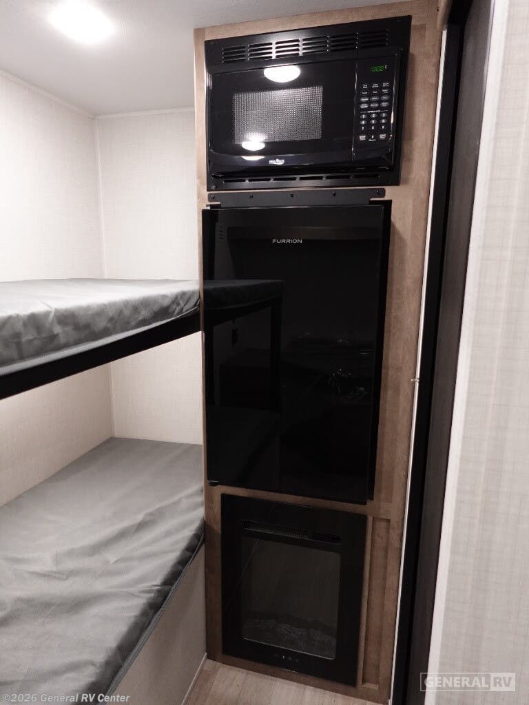 ## Keystone Springdale Mini travel trailer 1300BH highlights: - Full-Size Bed - Exterior Pass-Thru Storage - 3.3 Cu. Ft. 12V Refrigerator - Bunk Beds This lightweight travel trailer is perfect for four happy campers. You'll enjoy the front full-size bed, while your guests or little ones take the 28" x 74" bunk beds. There is also a shelf above the bed to keep your things organized. A private bath includes a shower with a toilet so you can freshen up each day without having to leave your camper. You can make your meals on the two burner gas cooktop or in the microwave oven, then take your plate outdoors to eat under the 8' power awning! With any Springdale Mini travel trailer by Keystone, you will enjoy lightweight towing thanks to their single-axle! The AlphaPly TPO roof membrane is ultra durable, and the power awning will provide protection from the sun as you relax in your camp chairs outside. Each model includes blackout night shades, LED lighting, plus many more interior comforts. There is also a roof A/C and 20K BTU furnace to keep you comfortable, plus a tankless water heater for endless hot showers!