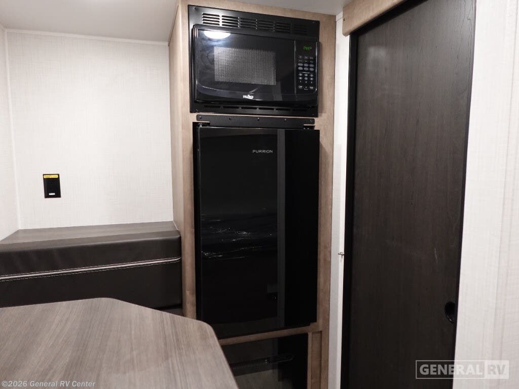 Keystone Springdale Mini travel trailer 1320RD highlights: Full-Size Bed Exterior Pass-Thru Storage 3.3 Cu. Ft. 12V Refrigerator Booth Dinette This lightweight travel trailer is perfect for three happy campers. You'll enjoy the front full-size bed, while your guest or little ones take the booth dinette when it's not being used to dine at. There is also a shelf above the bed to keep your things organized. A private bath includes a shower with a toilet so you can freshen up each day without having to leave your camper. You can make your meals on the two burner gas cooktop or in the microwave oven, then take your plate outdoors to eat under the 8' power awning! With any Springdale Mini travel trailer by Keystone, you will enjoy lightweight towing thanks to their single-axle! The AlphaPly TPO roof membrane is ultra durable, and the power awning will provide protection from the sun as you relax in your camp chairs outside. Each model includes blackout night shades, LED lighting, plus many more interior comforts. There is also a roof A/C and 20K BTU furnace to keep you comfortable, plus a tankless water heater for endless hot showers!