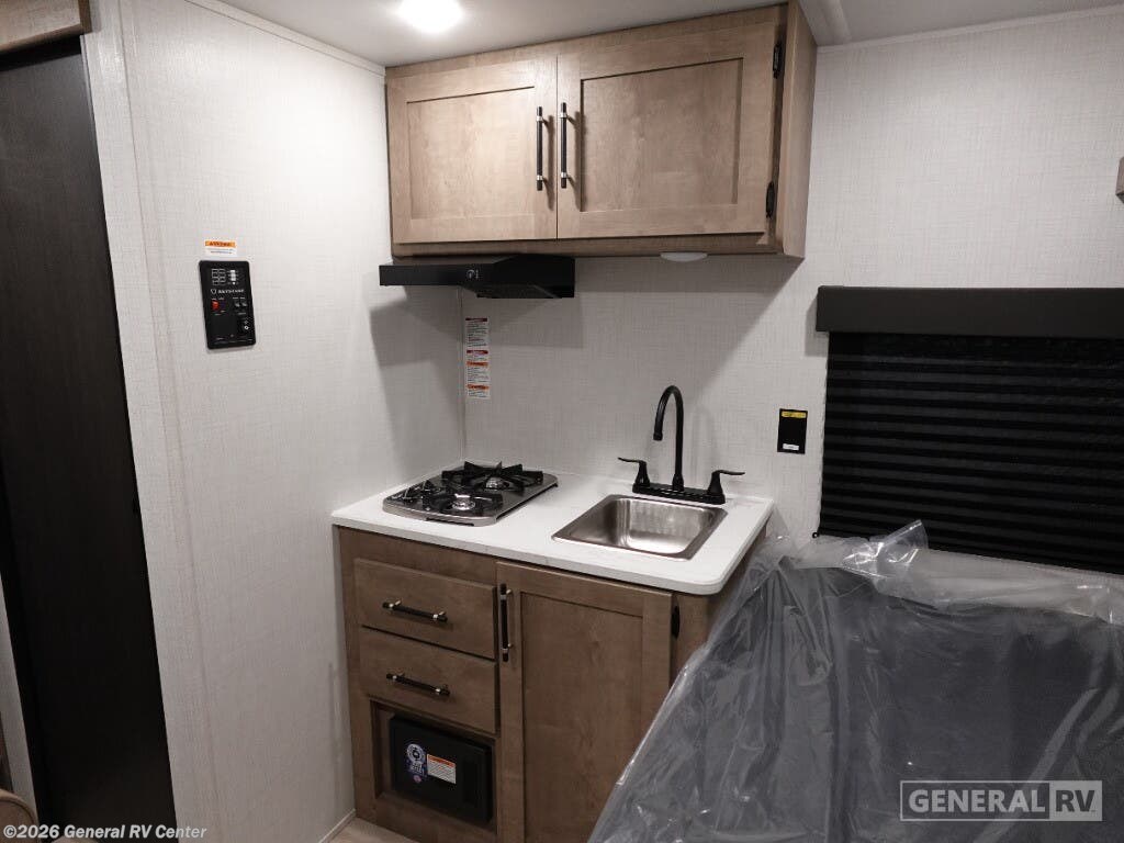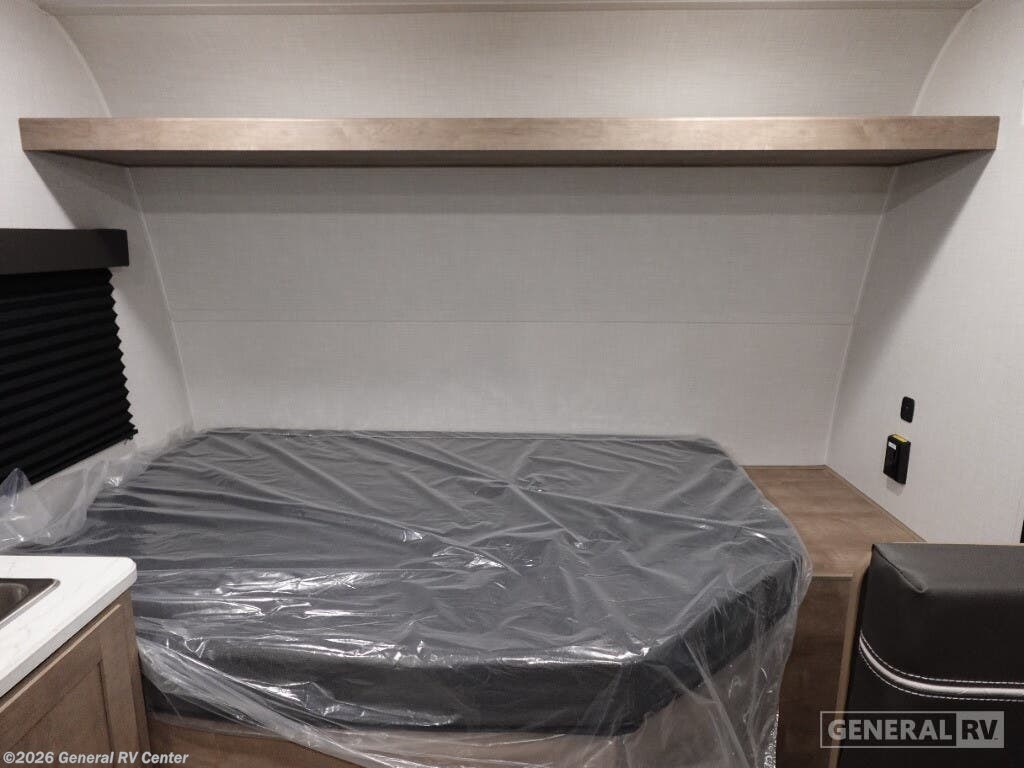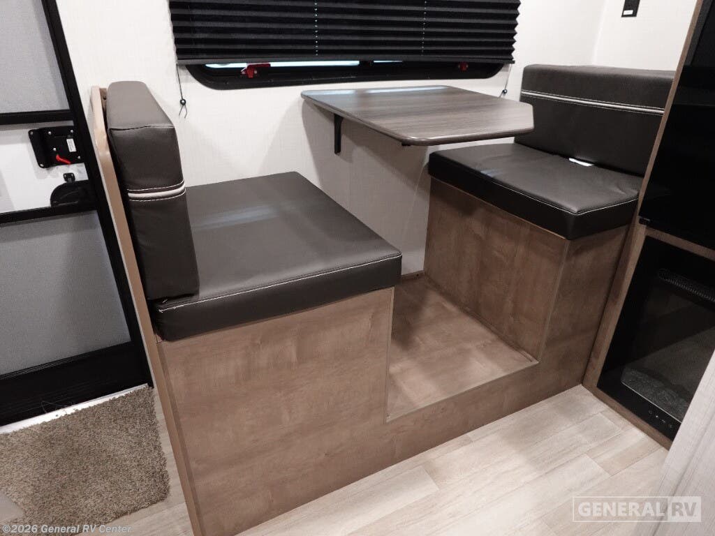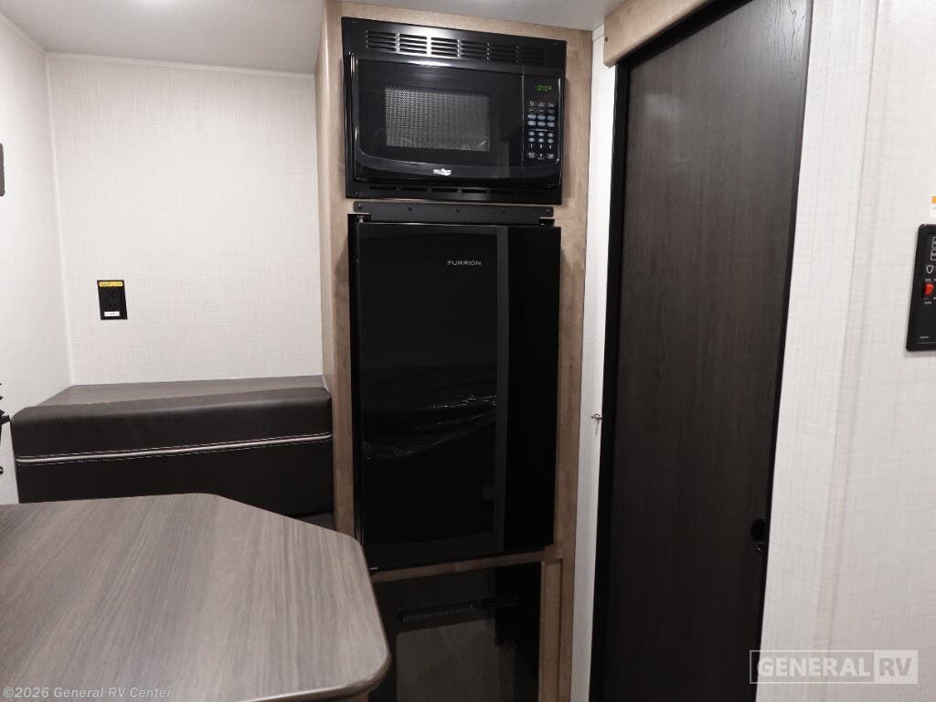 Keystone Springdale Mini travel trailer 1320RD highlights: Full-Size Bed Exterior Pass-Thru Storage 3.3 Cu. Ft. 12V Refrigerator Booth Dinette This lightweight travel trailer is perfect for three happy campers. You'll enjoy the front full-size bed, while your guest or little ones take the booth dinette when it's not being used to dine at. There is also a shelf above the bed to keep your things organized. A private bath includes a shower with a toilet so you can freshen up each day without having to leave your camper. You can make your meals on the two burner gas cooktop or in the microwave oven, then take your plate outdoors to eat under the 8' power awning! With any Springdale Mini travel trailer by Keystone, you will enjoy lightweight towing thanks to their single-axle! The AlphaPly TPO roof membrane is ultra durable, and the power awning will provide protection from the sun as you relax in your camp chairs outside. Each model includes blackout night shades, LED lighting, plus many more interior comforts. There is also a roof A/C and 20K BTU furnace to keep you comfortable, plus a tankless water heater for endless hot showers!