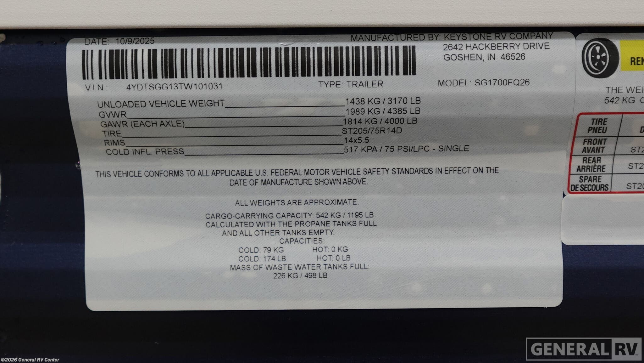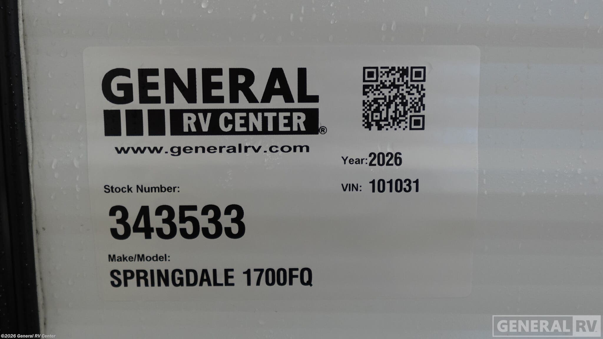 Request More Info on this 2026 Keystone Springdale 1700FQ Offered for sale by General RV Center