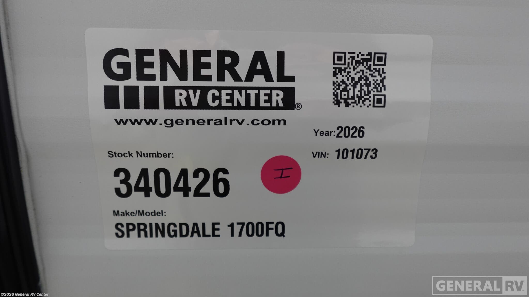Request More Info on this 2026 Keystone Springdale 1700FQ Offered for sale by General RV Center