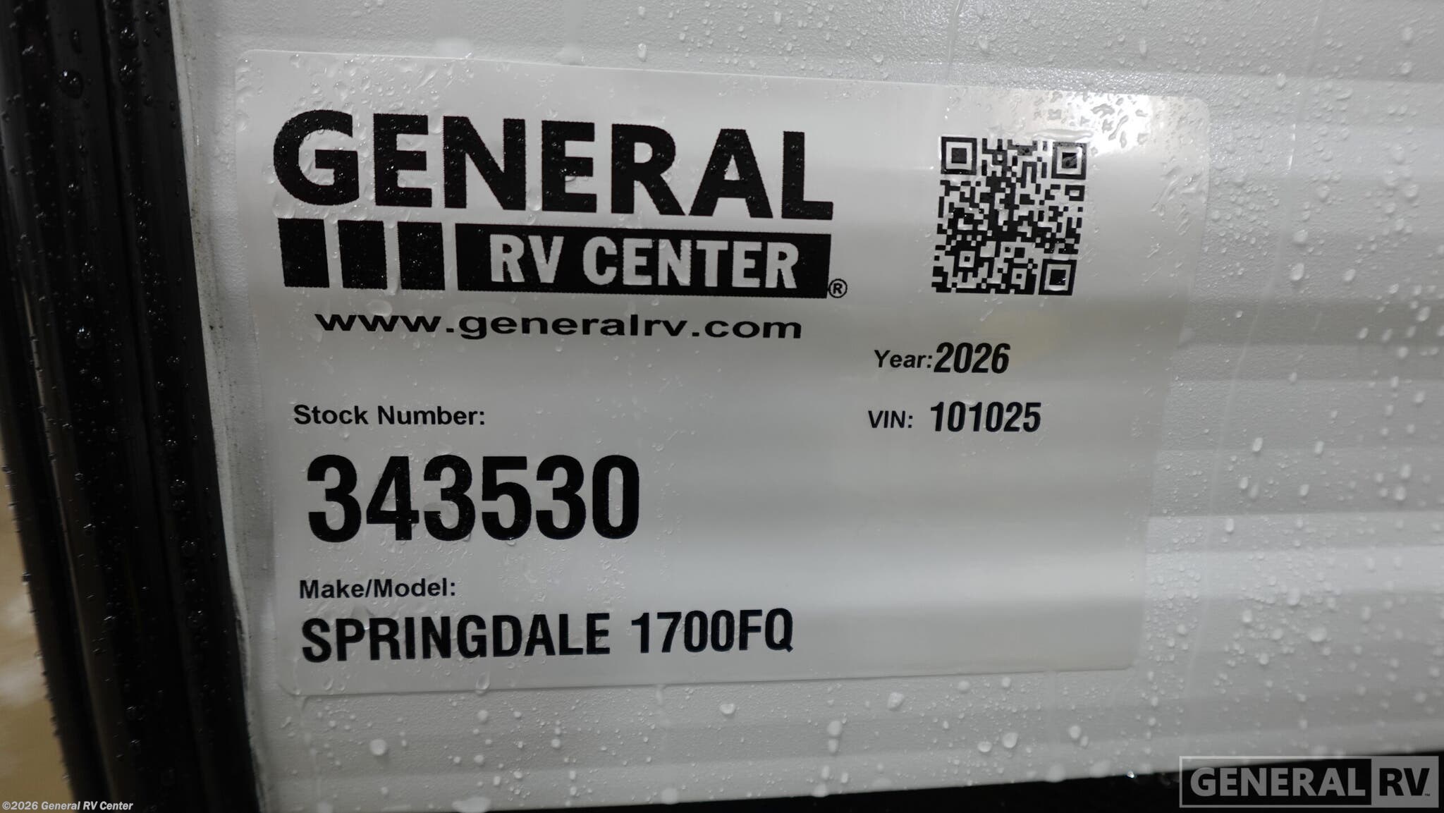 Request More Info on this 2026 Keystone Springdale 1700FQ Offered for sale by General RV Center