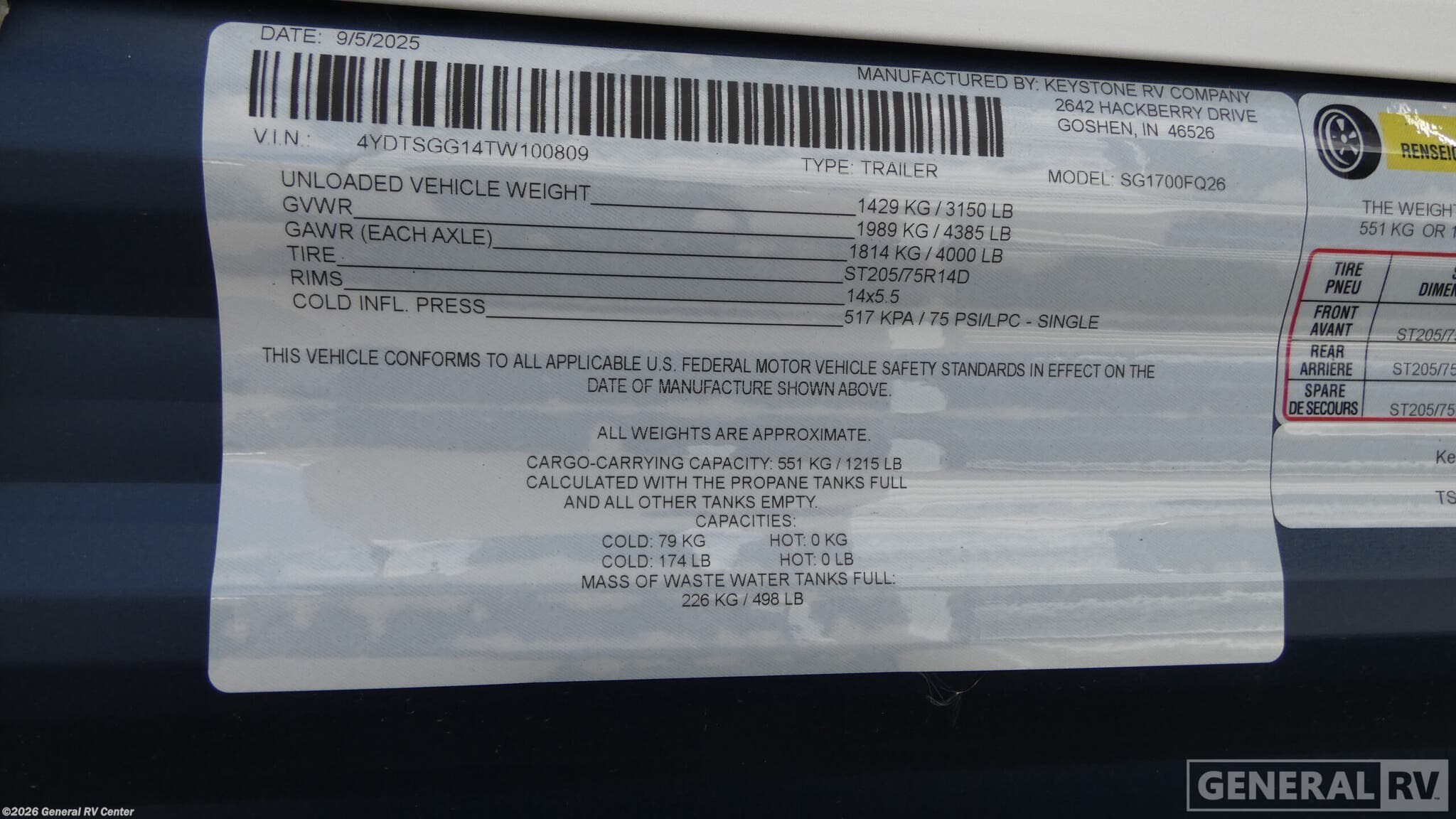 - VIN4YDTSGG14TW100809