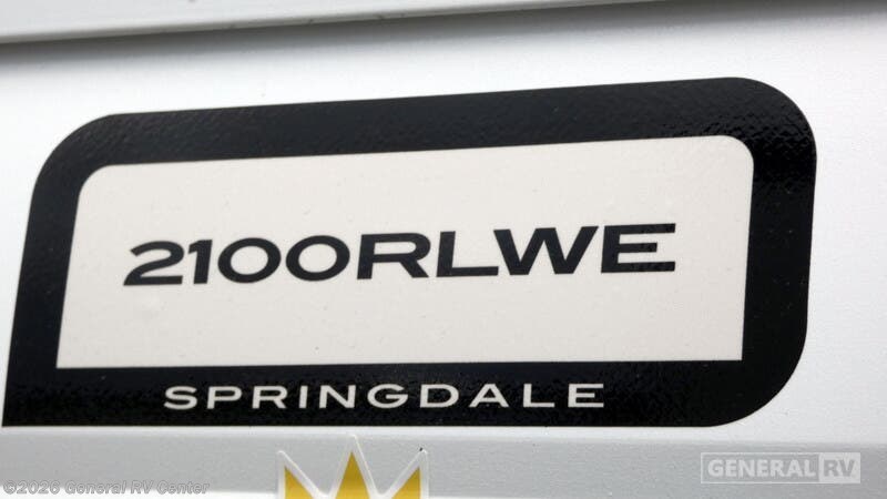 **Keystone Springdale travel trailer 2100RL highlights:** * Olympic RV Queen Bed * Pass-Through Storage * Sofa with End Tables * 12V Refrigerator Comfort comes easy in this dual entry travel trailer! You can enter in through the front master bedroom with an Olympic RV queen bed or the rear living area with a sofa. There are also two end tables on either side of the sofa plus a spacious pantry for snacks and dry goods. A three-burner cooktop and air fryer microwave will let you make meals each day, and a booth dinette provides a place to dine together. And don't overlook the walk-through bath that is easily accessible from the bedroom or kitchen! The Springdale travel trailers by Keystone will provide you and your family many great outdoor experiences and at-home comforts. Each one is constructed with a AlphaPly TPO roof membrane, Solid Step entry steps and XL tinted safety glass windows. There are also heavy-duty stabilizer jacks, along with an outside shower, a power awning with LED lights, and each model is SolarFlex ready if you choose to add solar power. Inside, you'll find blackout night shades, pressed membrane premium countertops, a stainless-steel sink, and LED lighting to keep your space well lit.