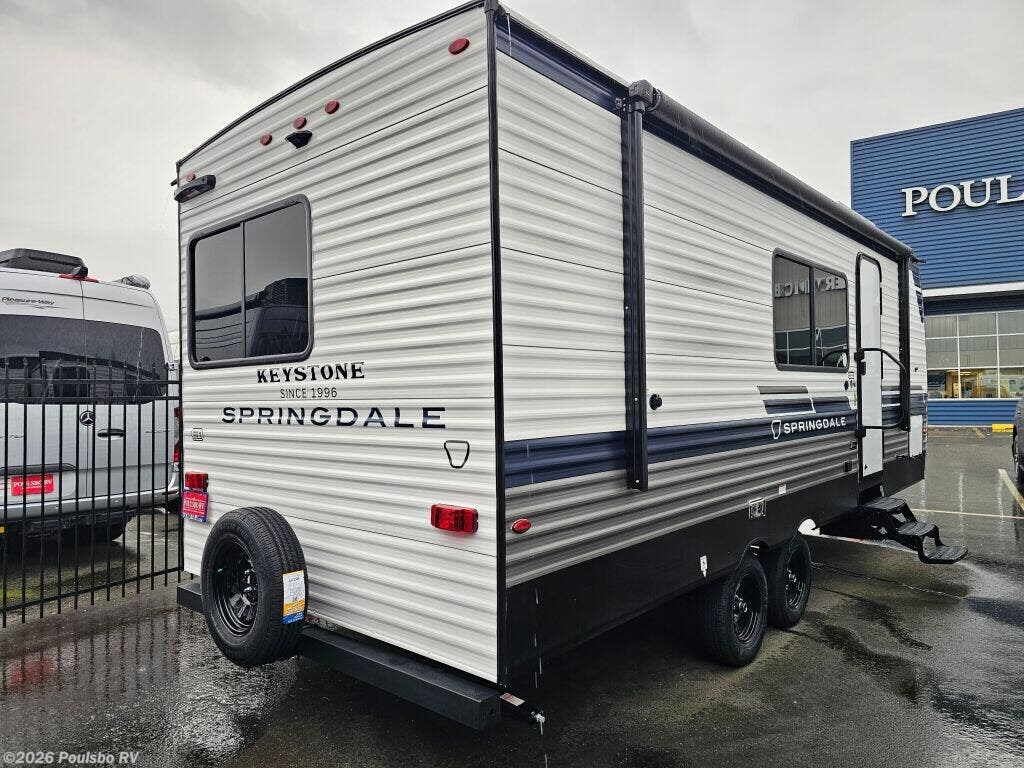 Experience the freedom of the open road with the 2026 Keystone Springdale Classic Double 224MLCWE. This new travel trailer offers a perfect blend of comfort and convenience in a compact 26.2 foot length, ideal for those who want easy towing without sacrificing living space. Designed to comfortably sleep six, this model provides flexible sleeping arrangements that accommodate families or groups with ease. Inside, the thoughtfully designed living area features a slide out that expands the interior, creating additional room for relaxing or entertaining. You will appreciate the convenience of modern amenities that enhance your RVing experience, along with features such as an electric awning that extends your living space outdoors and stabilizing jacks for simple setup and added stability. The balance of weight with a dry weight of 5250 pounds and hitch weight of 640 pounds makes it manageable for a broad range of tow vehicles. Whether setting up at your favorite campground or exploring new destinations, this Keystone travel trailer supports your sense of adventure with reliable and comfortable accommodations. As a family-owned, award-winning local RV dealer with multiple locations in Sumner, Everett, Kent, and Mt. Vernon Washington, Poulsbo RV is here to help you find the perfect RV. Stock#: M3773, VIN: 4YDTSGK21TG101460.