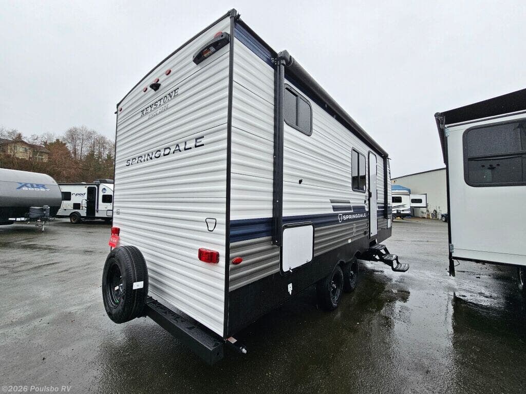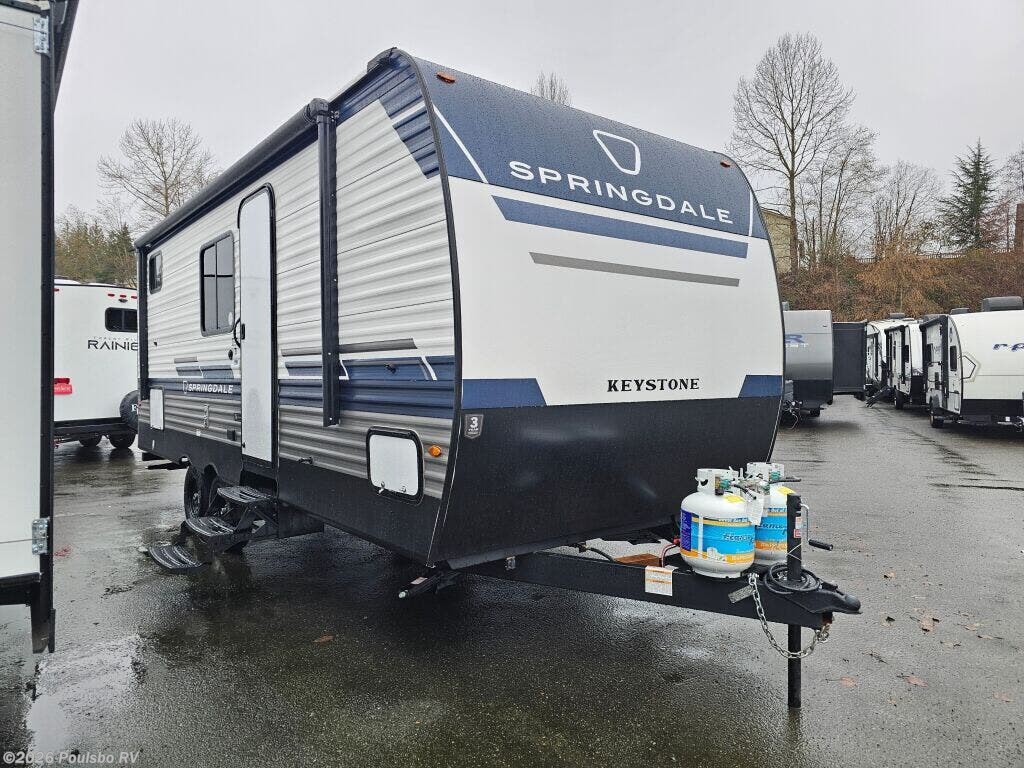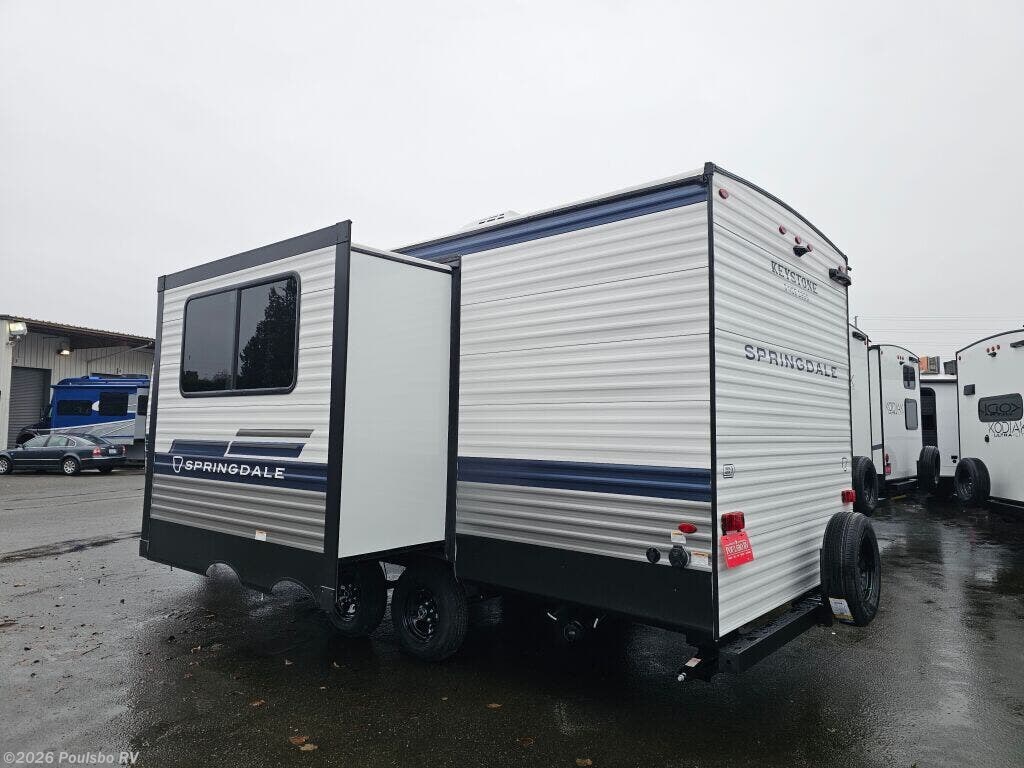 The 2026 Keystone Springdale Classic Double 21BHWE is designed to deliver an exceptional travel experience with ample space and thoughtful features that cater to families or groups needing comfort and flexibility on the road. This new travel trailer accommodates up to eight people comfortably thanks to its intelligent bunkhouse layout that enhances sleeping options without sacrificing living space. With one slide out, the interior feels open and inviting, allowing everyone to gather easily for meals, relaxation, or entertainment. The single awning creates an ideal outdoor living area where you can unwind in the shade while enjoying fresh air at your favorite destination. Built for convenience and stability, this model includes leveling jacks that help provide a solid foundation no matter where your adventures take you. This Keystone Springdale offers a perfect balance of reliable construction and everyday functional amenities that make RVing accessible and enjoyable to both new and seasoned travelers. You will appreciate the ease of setup and the comfortable interior that supports a variety of travel lifestyles. Whether you are planning weekend getaways or extended vacations, this travel trailer helps you connect with nature and those you travel with by providing a welcoming space to create lasting memories. As a family owned, award winning local RV dealer with multiple locations in Sumner, Everett, Kent, and Mt Vernon Washington, Poulsbo RV is here to help you find the perfect RV. Stock#: E5991, VIN: 4YDTSGJ23TG101445.