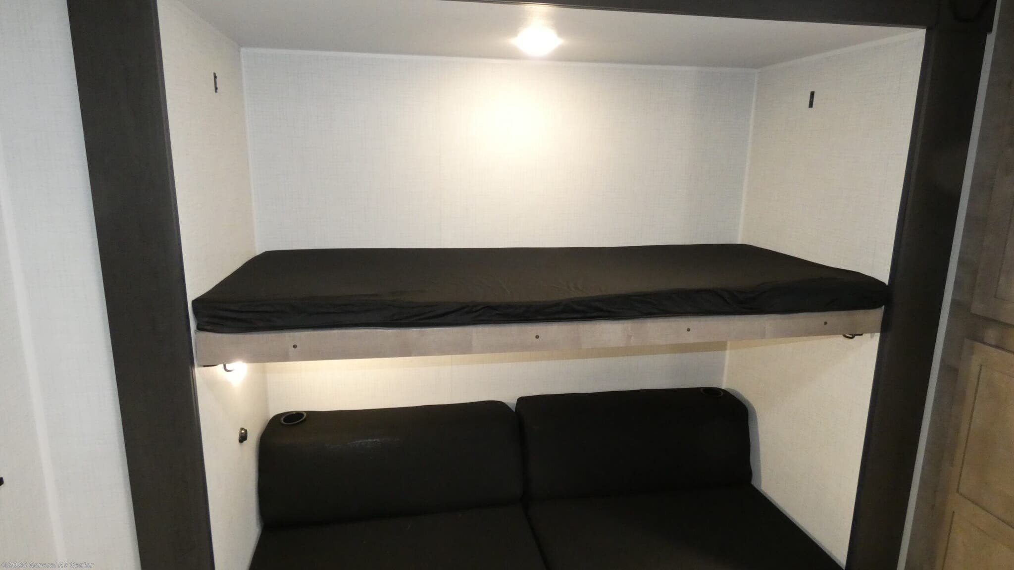Keystone Springdale MAX travel trailer 3100XBR highlights: Double Slides Sofa Waterproof Pass-Through Storage 30" x 36" Shower Dual Entry Doors This bunkhouse travel trailer is a great choice for families who want extra sleeping space and a comfy hangout zone. The rear bunkhouse gives the kids or guests their own retreat, with a bunk and a flip-up bunk that opens up the floor for playing or stashing gear when it’s time to travel. Dual entry doors make life easier at the campsite, including an entrance that leads directly into the full bathroom so muddy feet and late-night trips don’t track through the whole trailer. In the main living area, a sofa and booth dinette within the slide out creates a roomy spot to relax, eat, play games, or convert to extra sleeping space as needed, and up front you’ll find an Olympic queen bed that gives you more room to stretch out than a standard queen. The Springdale MAX travel trailers by Keystone make extended stays easier than ever! Each one is built with an 8' wide construction, along with a flat front metal with tough coat, a fully walkable roof, and XL tinted safety glass windows. The I-beam frame with stamped steel cross-members and outriggers provides added durability, and you'll also appreciate the Tru-Fit slide construction that minimizes functional motor stress and resists leaking. A power tongue jack and power stabilizer jacks are included outside, along with SolidStep entry steps, a power awning with LED lights, and a helpful exterior convenience center. Inside, you'll find generous storage spaces, blackout night shades, USB A and C connections throughout, a hi-rise kitchen faucet, and an upgraded Oxygenics Fury showerhead to name a few comforts!