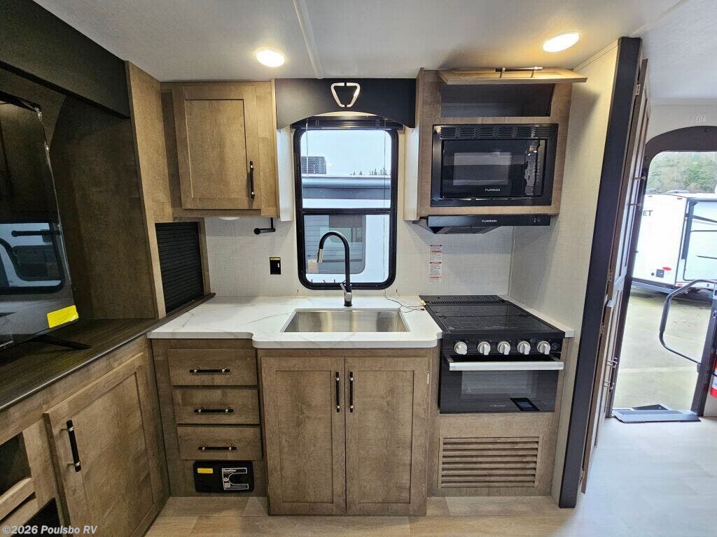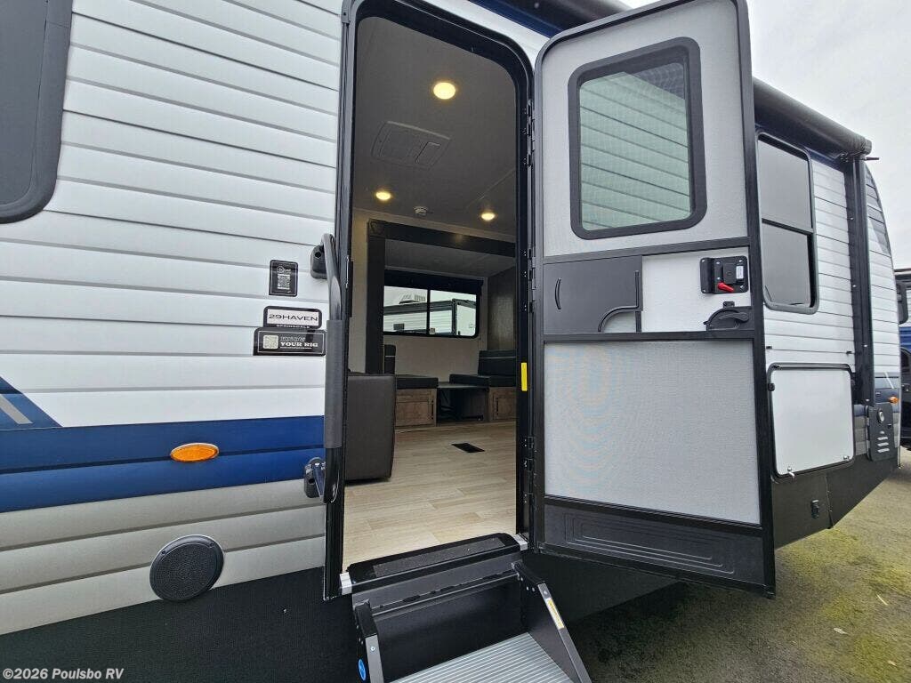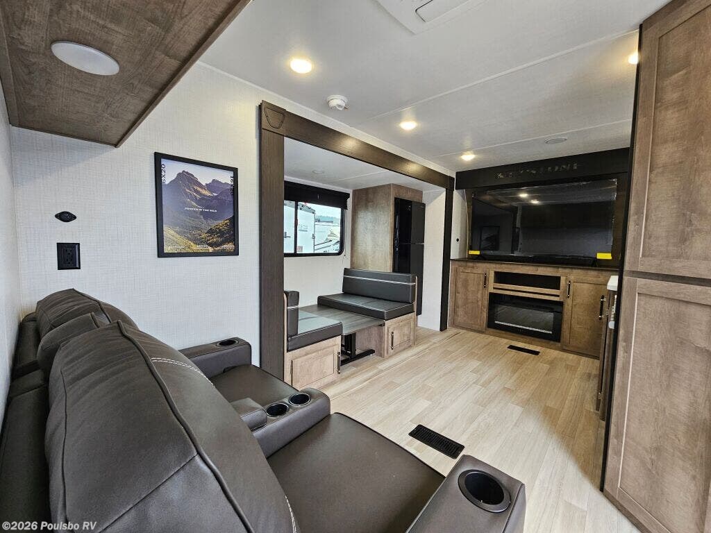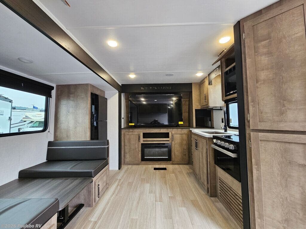 The 2026 Keystone Springdale Max 29HAVEN presents a spacious and comfortable option for those seeking a new travel trailer designed to elevate the RV experience. With an overall length of 33.11 feet and a sturdy GVWR of 9500 pounds, this model offers well-balanced mobility while maintaining ample living space. The single slide-out expands the main living area, creating an inviting environment perfect for relaxation and socializing. Inside, the thoughtfully designed layout prioritizes functionality and comfort without including bunk beds or a bunkhouse, making it an ideal choice for couples or small families who prefer flexible sleeping arrangements. The dry weight of 7370 pounds, paired with a hitch weight of 1045 pounds, ensures manageable towing for those wanting a hassle-free adventure on the road. Essential convenience and comfort features include a reliable leveling jack system that guarantees stability wherever you park, and an integrated audio system that adds entertainment value to your travels. The interior living area is designed to maximize space, encouraging memorable moments together with loved ones while providing a practical home-away-from-home feel. This Keystone model stands out by combining rugged dependability with comfortable amenities, making it an excellent choice for creating new memories during your RV travels. As a family-owned, award-winning local RV dealer with multiple locations in Sumner, Everett, Kent, and Mt. Vernon Washington, Poulsbo RV here to help you find the perfect RV. Stock#: S987, VIN: 4YDTSGP24T7102224.