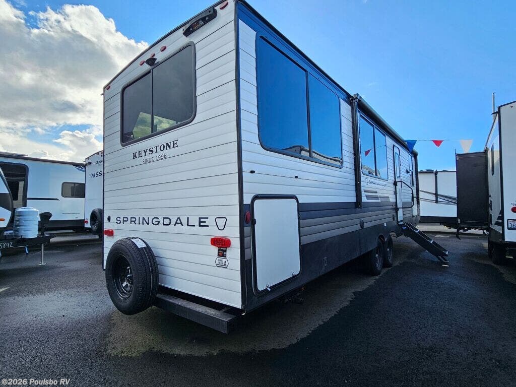 Experience the perfect blend of comfort and convenience with the 2026 Keystone Springdale Max 29HAVEN, designed to elevate your RV lifestyle. This new model measures over 33 feet in length, providing generous living space that is enhanced by one slide out?expanding the interior to create a welcoming environment for family and friends. Whether you are embarking on a weekend getaway or an extended road trip, the Springdale Max 29HAVEN offers spaciousness that invites relaxation and connection. Inside, you will find flexible sleeping accommodations crafted to meet your needs, ensuring restful nights and refreshing mornings. The design emphasizes functionality, featuring thoughtful convenience elements that simplify your travel experience. Leveling jacks provide easy setup and stability at every stop, allowing you to focus on enjoying your journey without worry. With a dry weight of 7370 pounds and a hitch weight of 1045 pounds, this model offers a balance of manageable towing and reliable performance. The GVWR of 9500 pounds assures you that the Springdale Max 29HAVEN is capable of handling your gear and essentials for all your adventures. This Keystone RV combines quality craftsmanship with practical design, making it an excellent choice for individuals and families who seek flexibility and comfort on the road. Its brand new condition guarantees up to date features and durability that you can trust. As a family owned, award winning local RV dealer with multiple locations in Sumner, Everett, Kent, and Mt Vernon Washington, Poulsbo RV is here to help you find the perfect RV. Stock#: K6263, VIN: 4YDTSGP27T7102217.