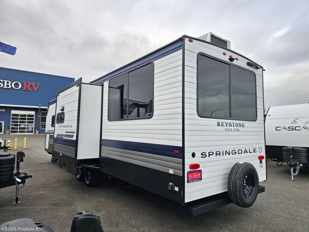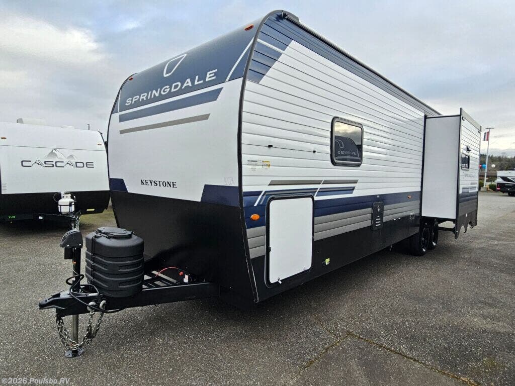 The 2026 Keystone Springdale Max 31SUNROOM is a spacious new travel trailer perfect for those looking to enhance their RVing experience with comfort and style. This model offers a generous length of over 35 feet, providing ample space for living and entertaining. The standout feature is the unique sunroom area, which creates a bright and open living environment, allowing you to enjoy panoramic views and natural light wherever your travels take you. Designed for flexibility and ease, this RV includes a single slide-out that expands the main living space, making it easy to relax inside after a day of adventure. With a dry weight of 7550 pounds and a hitch weight of 830 pounds, the Springdale Max balances towing convenience and sturdy construction. Its heavy GVWR rating of 9500 pounds ensures durability and safety on the road. Inside, the arrangement accommodates comfortable sleeping without bunk beds or a bunkhouse, emphasizing a more open and versatile floor plan. The RV also comes equipped with leveling jacks, enhancing stability and setup convenience wherever you choose to park. Thoughtfully designed, this trailer is ideal for families or groups seeking a blend of livability and functional design for memorable trips. As a family owned, award winning local RV dealer with multiple locations in Sumner, Everett, Kent, and Mt Vernon Washington, Poulsbo RV is here to help you find the perfect RV. Stock#: M3802, VIN: 4YDTSGR27T7102246