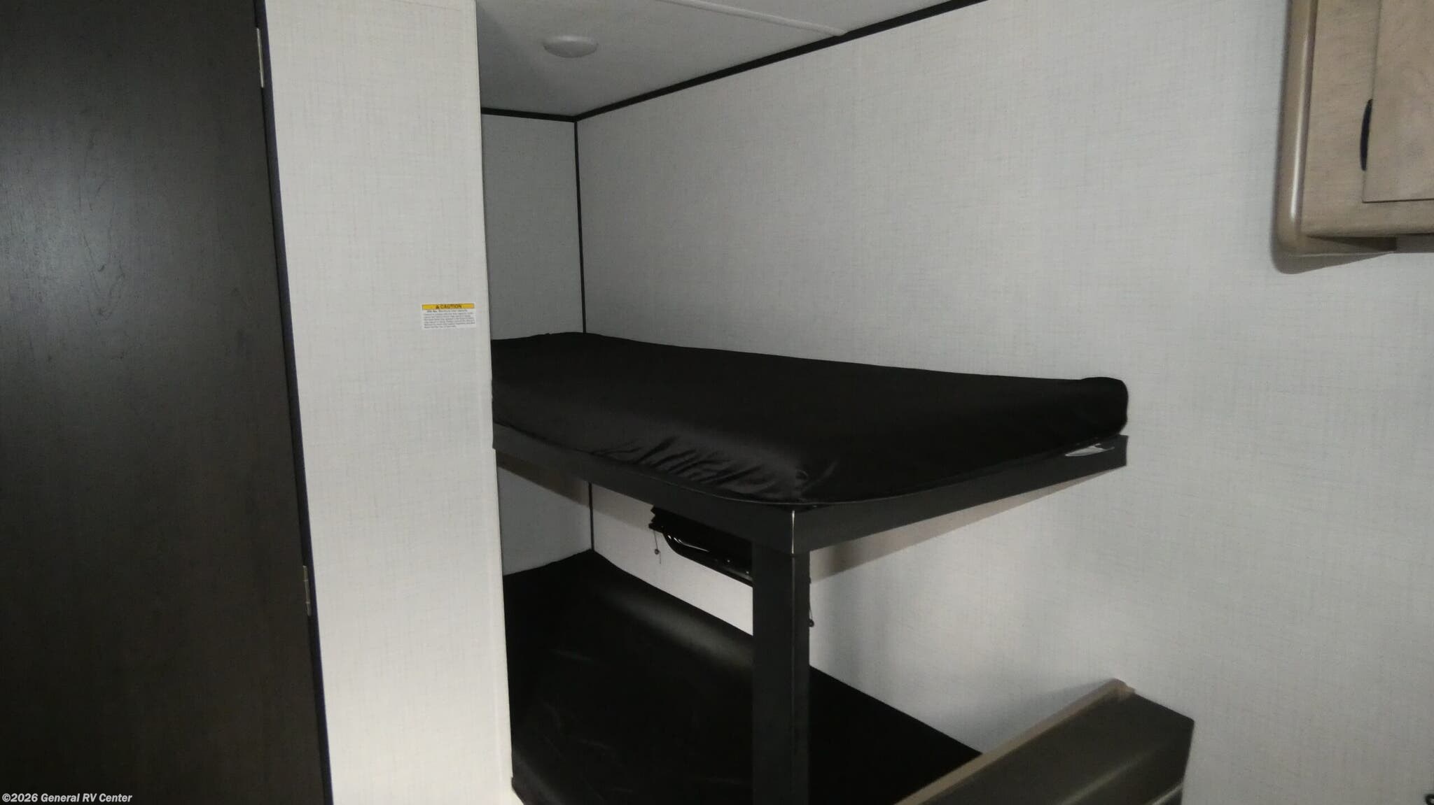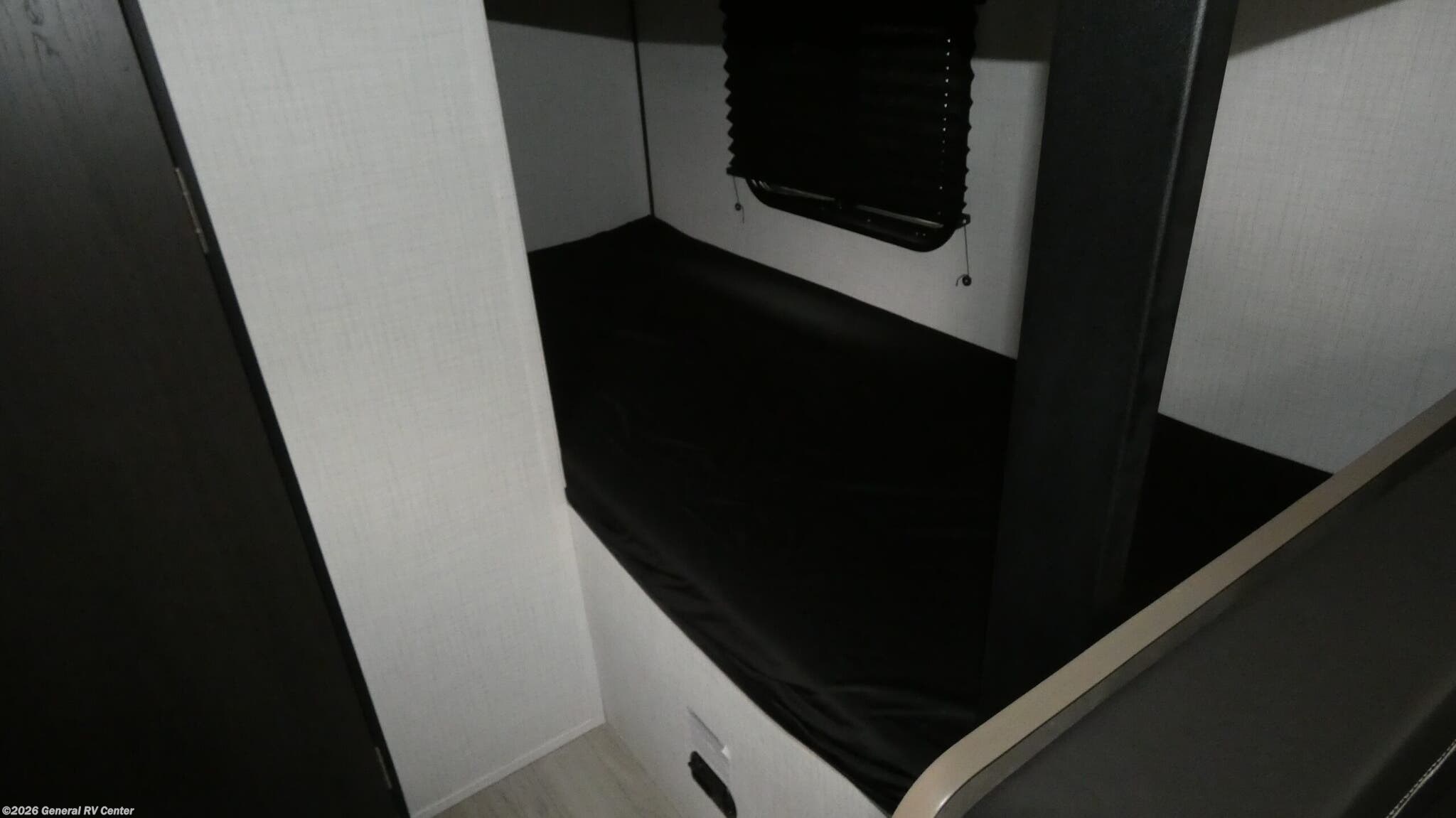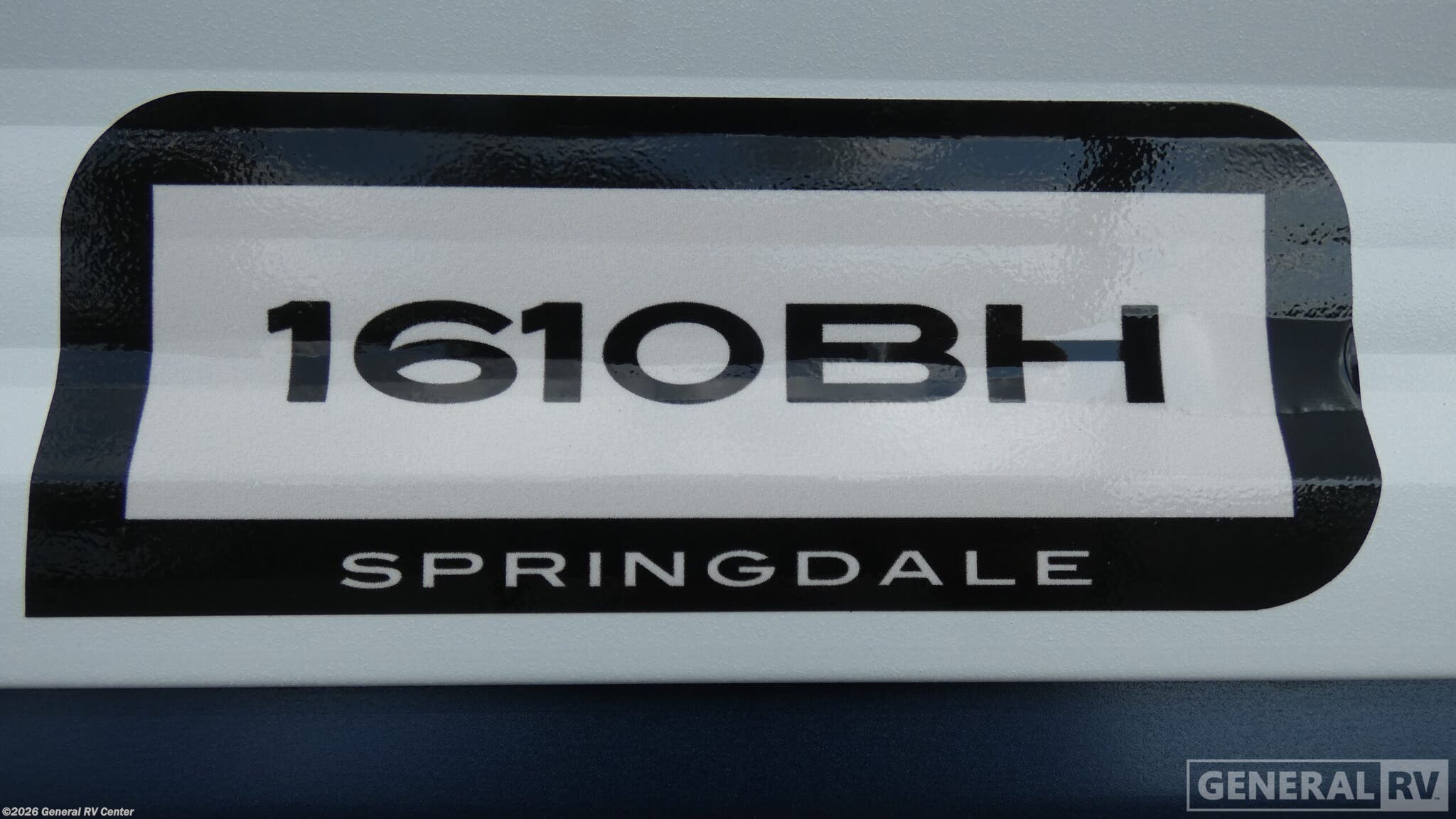 Keystone Springdale Mini travel trailer 1610BH highlights: - Olympic RV Queen Bed - Full Bath - Pass-Through Storage - Booth Dinette This travel trailer with rear corner bunk beds is sure to be a hit at the campground! While your guests or little ones take the bunks, you can enjoy the front Olympic RV queen bed to yourselves. There is even storage under the bed, an overhead shelf, and a wardrobe for your things. The chef of your group can whip up meals on the two-burner cooktop or in the microwave oven, and there is a 3.3 cu. ft. 12V refrigerator to keep food fresh. A booth dinette provides a place to dine together, or you can take your plate outdoors to sit under the 8' power awning with LED lights! With any Springdale Mini travel trailer by Keystone, you will enjoy lightweight towing thanks to their single axle! The XL tinted safety glass windows are ultra durable, and the power awning will provide protection from the sun as you relax in your camp chairs outside. Each model includes blackout night shades, LED lighting, plus many more interior comforts. There is also a 20K BTU furnace to keep you comfortable, plus a tankless water heater for endless hot showers!