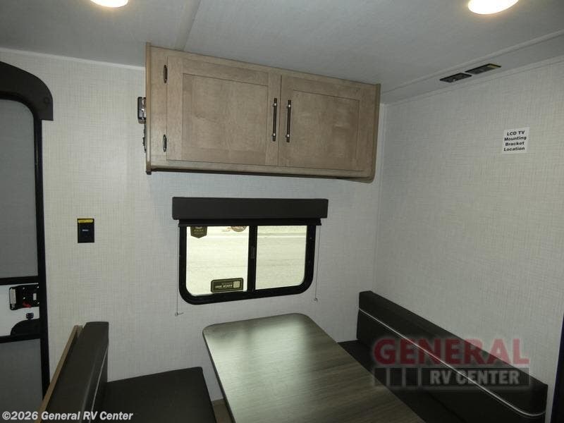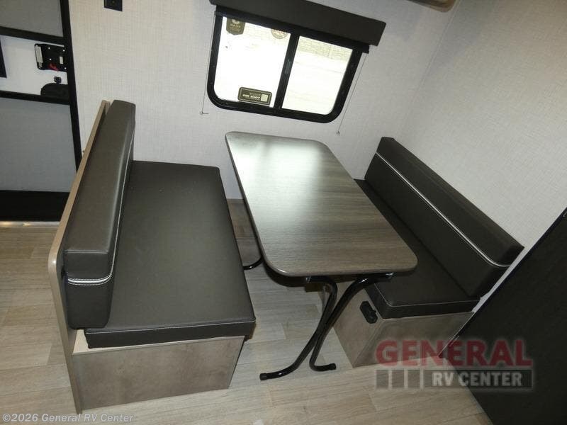 This cozy trailer for two or four will have you out enjoying nature easily. There is a queen bed for you, and the booth dinette can easily transform into a bed for one or two more campers if needed at night. The rear private bath features a shower and vanity with sink, plus toilet so no late night trips to the campground bathroom. There is ample storage in overhead cabinets on both sides of the trailer, as well as dual closets and nightstands on either side of the bed. A 10' awning offers even more living space outside. Grab a couple of camp chairs and enjoy hanging out with your campground neighbors or enjoying a campfire.