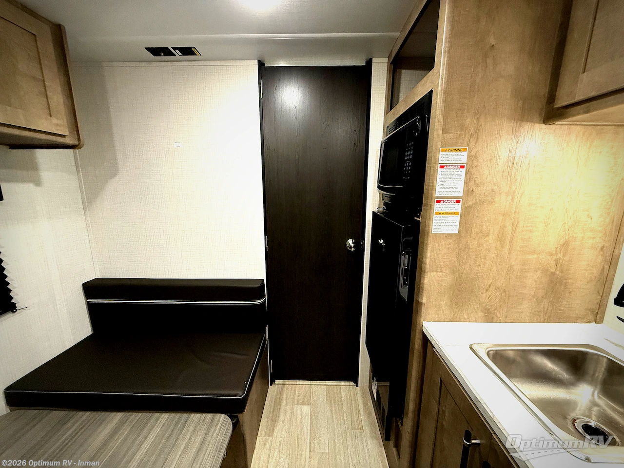 This cozy trailer for two or four will have you out enjoying nature easily. There is a queen bed for you, and the booth dinette can easily transform into a bed for one or two more campers if needed at night. The rear private bath features a shower and vanity with sink, plus toilet so no late night trips to the campground bathroom. There is ample storage in overhead cabinets on both sides of the trailer, as well as dual closets and nightstands on either side of the bed. A 10' awning offers even more living space outside. Grab a couple of camp chairs and enjoy hanging out with your campground neighbors or enjoying a campfire.