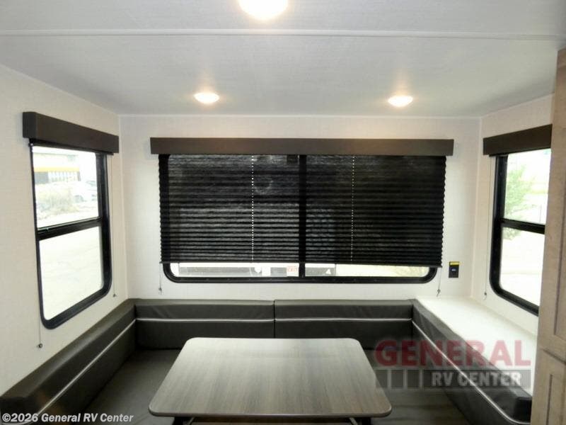 You will find lots of storage inside and outside this trailer allowing you to bring along everything you need for a great camping trip! Along the exterior there is a pass-thru compartment for your outdoor gear and a 10' power awning giving you a covered outdoor living area to enjoy. The cook will have a two burner gas range to make meals, and everyone can dine around the U-shaped dinette. There is a full bathroom to get cleaned up in before bedtime, and a queen bed to fall asleep quickly so you can have fun again tomorrow.