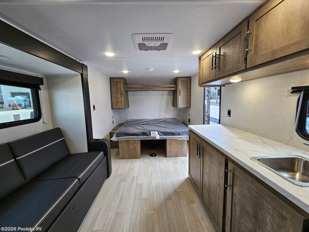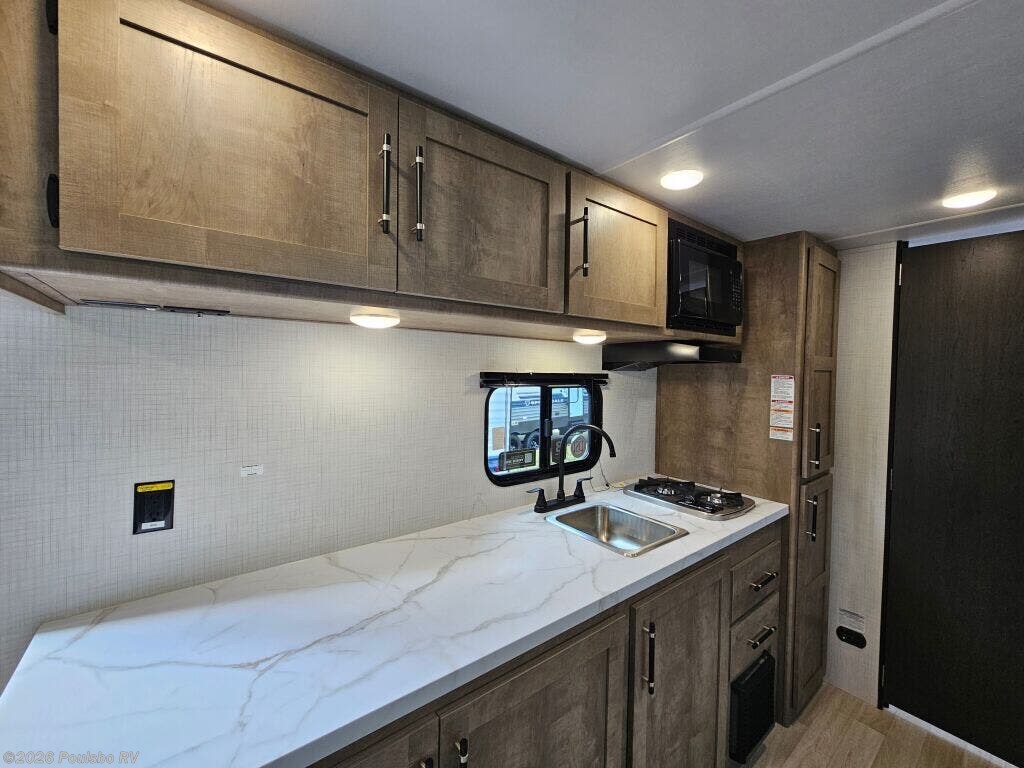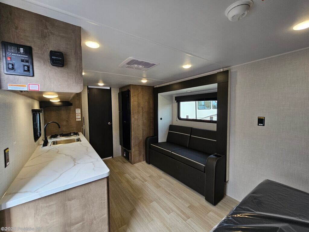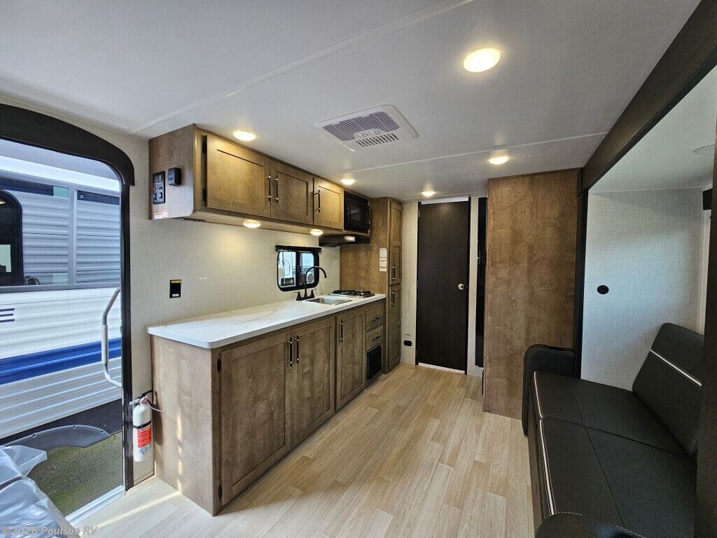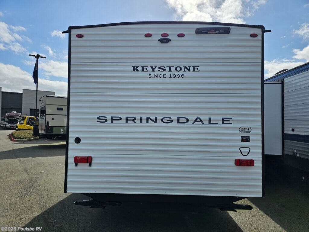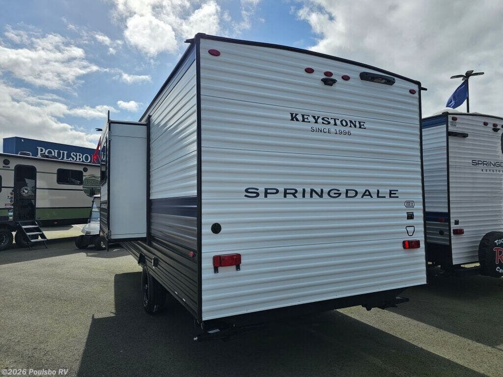 The 2026 Keystone Springdale Mini 1950RBS is a new, compact travel trailer designed to enhance your RV experience with practical living and flexible sleeping arrangements. At 23.4 feet long, this lightweight model weighing 3977 pounds dry makes towing manageable while providing efficient use of space for up to three sleepers. Featuring one slide-out, the interior living area expands to offer greater comfort during extended trips, creating a more open atmosphere perfect for relaxing or entertaining. The design maximizes every inch to deliver a cozy environment tailored to your needs. Convenience is at the forefront with amenities like an awning that lets you enjoy the outdoors with shade and shelter, while the hitch weight of 515 pounds ensures stable towing performance. Ideal for getting away from it all, this Keystone Springdale Mini model provides dependable support and comfort. Leveling jacks help stabilize the trailer, making set up easy and secure wherever your journey leads. Inside, you will find a smart layout that balances living space with functional sleeping space, making it suitable for couples or small families. As a family owned, award winning local RV dealer with multiple locations in Sumner, Everett, Kent, and Mt Vernon Washington, Poulsbo RV is here to help you find the perfect RV. Stock#: S1019, VIN: 4YDTSGH17TW101824.