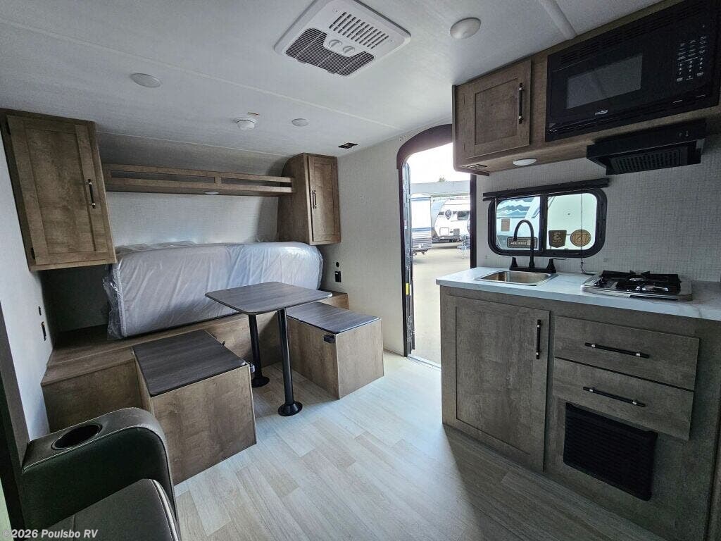 2026 Keystone Springdale Mini 1990BHS offers an ideal blend of compact size and family-friendly features, perfect for those seeking adventure without sacrificing comfort. This new travel trailer measures 23.4 feet in length and is designed to accommodate up to seven people, making it an excellent option for families or groups. The bunkhouse layout provides flexible sleeping arrangements, ensuring everyone has their own comfortable space to rest. Its single slide-out expands the living area, enhancing the spacious feel inside the RV and allowing for a relaxed environment during downtime. Enjoy convenient outdoor living with the easy-to-use awning that provides shade and shelter for gatherings or quiet moments outside. The Keystone Springdale Mini comes equipped with leveling jacks, helping you achieve a stable setup wherever your travels take you. Inside, you can appreciate thoughtful design that maximizes space while maintaining functionality. Whether you are embarking on weekend getaways or extended vacations, this RV supports your lifestyle with comfort and practicality. As a family-owned, award-winning local RV dealer with multiple locations in Sumner, Everett, Kent, and Mt. Vernon Washington, Poulsbo RV here to help you find the perfect RV. Stock#: K6277, VIN: 4YDTSGH17TW101600.