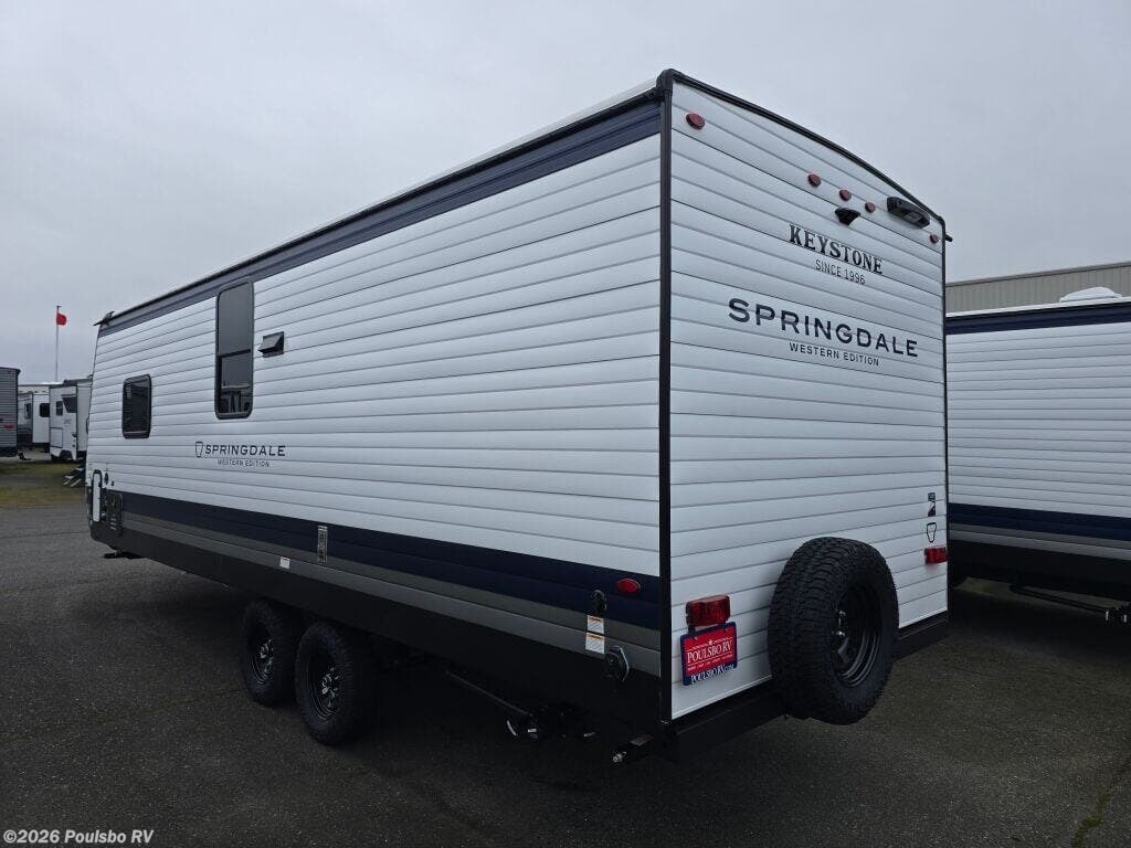 2026 Keystone Springdale 2300BHWE redefines family adventure with its spacious 27.6-foot design perfect for creating lasting memories on the road. This new RV offers remarkable sleeping accommodations for up to nine people, featuring a convenient bunkhouse complete with two bunk beds that provide flexible and comfortable rest options for kids or guests. The thoughtfully designed living area promotes relaxation and togetherness without the need for slide outs, making every square foot count during your travels. Enjoy fresh air and shade with the single awning, ideal for outdoor lounging at your favorite campsites. The Springdale 2300BHWE also caters to practical needs with its reliable leveling jacks, which help stabilize your home away from home on uneven terrain. Inside, you can appreciate well-planned convenience features that boost your RV experience, from ample storage to functional layouts that make packing and unpacking effortless. With a gross vehicle weight rating of 6500 pounds and a hitch weight of 595 pounds, this Keystone model balances durability and towability, empowering you to bring the whole family along with confidence. As a trusted partner in your RV journey, Poulsbo RV is here to assist you in discovering the perfect fit, proudly serving communities in Sumner, Everett, Kent, and Mt. Vernon Washington. Stock#: M3814, VIN: 4YDTSGK21TG102348.