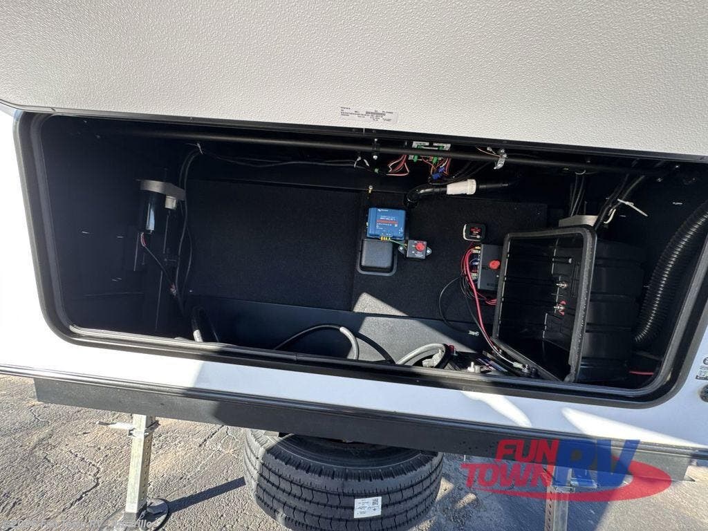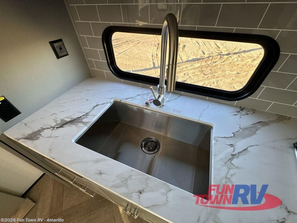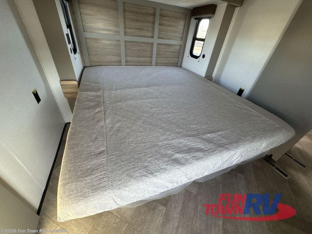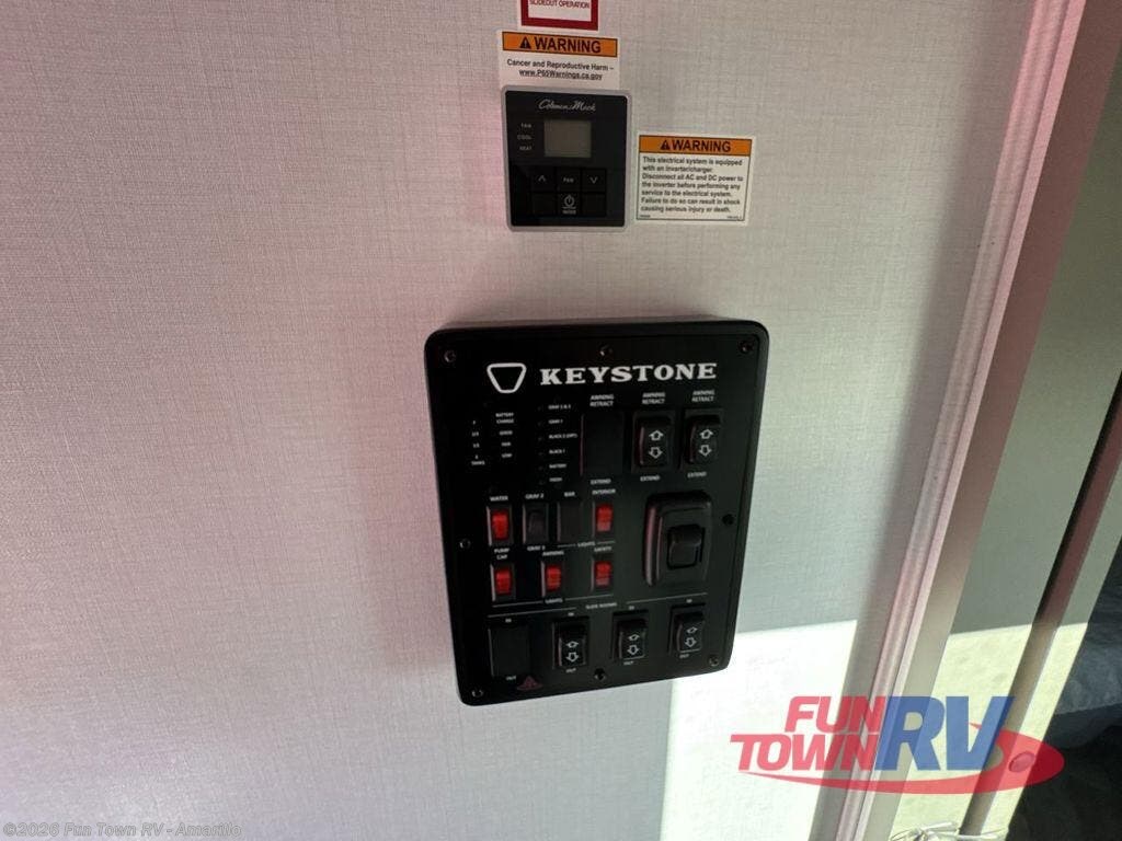 The Sprinter fifth wheels by Keystone feature spacious living areas, plenty of storage, and outstanding towability. Each unit is constructed with 2" aluminum framed and laminated sidewalls, a fully walkable roof, and dual layer insulation to help extend your camping season. The heated pass-through storage includes lockable slam latch baggage doors so you can easily pack your gear, and the one-touch 4-point leveling system features return hookup memory to have you set up in no-time. Head inside to find Congoleum vinyl flooring, Thomas Payne luxury collection furniture, residential style seamless marbled countertops, and an upgraded bedspread to name a few comforts. The Sprinter also includes a Girard tankless on-demand water heater, a central command center, plus a 30k BTU furnace and two A/C units to ensure your comfort!