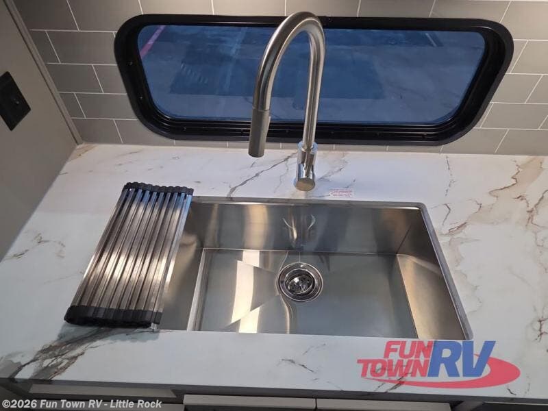 The Sprinter fifth wheels by Keystone feature spacious living areas, plenty of storage, and outstanding towability. Each unit is constructed with 2" aluminum framed and laminated sidewalls, a fully walkable roof, and dual layer insulation to help extend your camping season. The heated pass-through storage includes lockable slam latch baggage doors so you can easily pack your gear, and the one-touch 4-point leveling system features return hookup memory to have you set up in no-time. Head inside to find Congoleum vinyl flooring, Thomas Payne luxury collection furniture, residential style seamless marbled countertops, and an upgraded bedspread to name a few comforts. The Sprinter also includes a Girard tankless on-demand water heater, a central command center, plus a 30k BTU furnace and two A/C units to ensure your comfort!