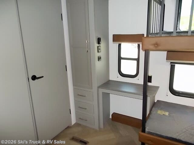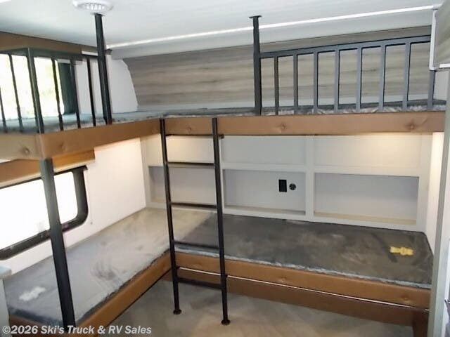 2026 Keystone Sprinter 3980FBS Fifth Wheel Bunkhouse; *THIS UNIT AVAILABLE TO ORDER* 43 Foot; 4 Slides; Sleeps 8-10 ; Hitch Weight: 2720 Lbs.; Dry Weight: 13,020 Lbs.; 50 Amp; Auto Leveling; 75 Gal. Fresh Water Cap.; 88 Gal. Black Water Cap.; 88 Gal. Gray Water Cap.; Two 30 Lbs. Propane Tanks with LP Quick Connect; Three ACs: 15,000 / 15,000 / 13,500 BTUs; 30,000 BTU Furnace; 16 C.F. (12V) Refrigerator; On Demand Water Heater; Microwave; 3-Burner Stove/Oven; Three TV Jacks; 50 In. HDTV; Entertainment Center; Speakers; Dimmable Main Lights; One Fireplace; Kitchen Island; Pantry; Stainless Steel Sink; Free Standing Dinette; Super Sofa (Seats 5); King Bed; Large Wardrobe; Dresser; Single Bunks; Desk Area in Bunk Room; 1.5 Baths: One Full Bath with Shower; Half Bath; Dual Sinks; Porcelain Foot Flush Toilets; Washer/Dryer Prep.; Linen Closet; Two Power Awnings with LED Lights: 10 Ft. / 15 Ft.; Solar Package; Backup Camera Prep.; Outside Shower; Exterior Storage; Foldup Steps; Roof Ladder Prep.; Rear Hitch; Battery Disconnect; Black Tank Flush; Thermal Package; Tinted Windows; Night Shades; Aluminum Wheels; Spare Tire; One Year Limited Warranty; Financing Available; Super Fifth Wheel Bunkhouse for the Price: $59,995. Call Skis Truck & RV Sales at 765-344-1111 or visit us at for more information.